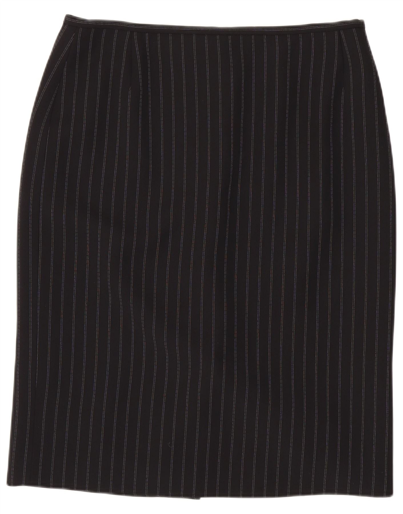 Damska spódnica ołówkowa JAEGER UK 16, duża, W34, poliester w czarne paski