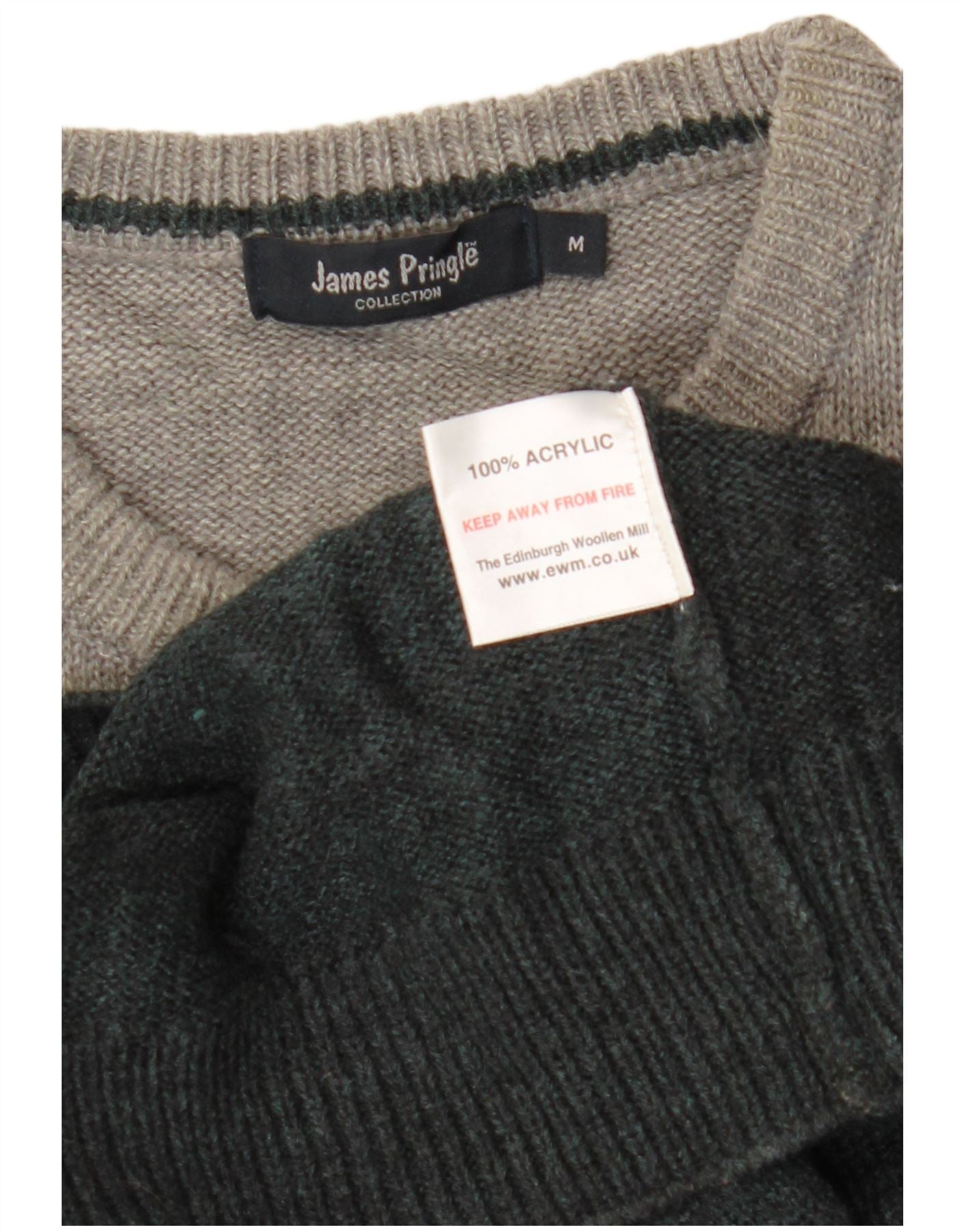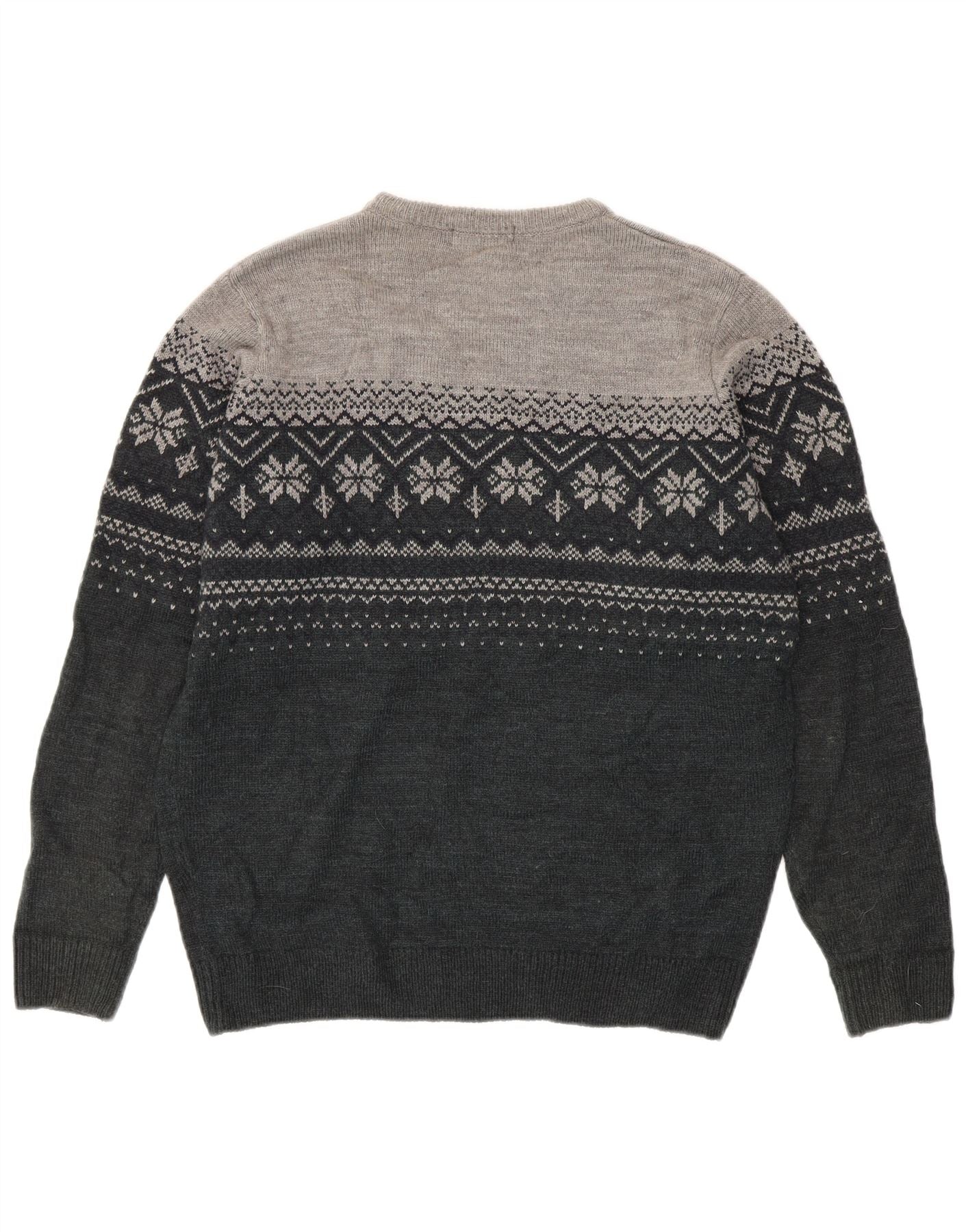 JAMES PRINGLE Męski sweter z dekoltem w łódkę Średni szary Fair Isle akryl