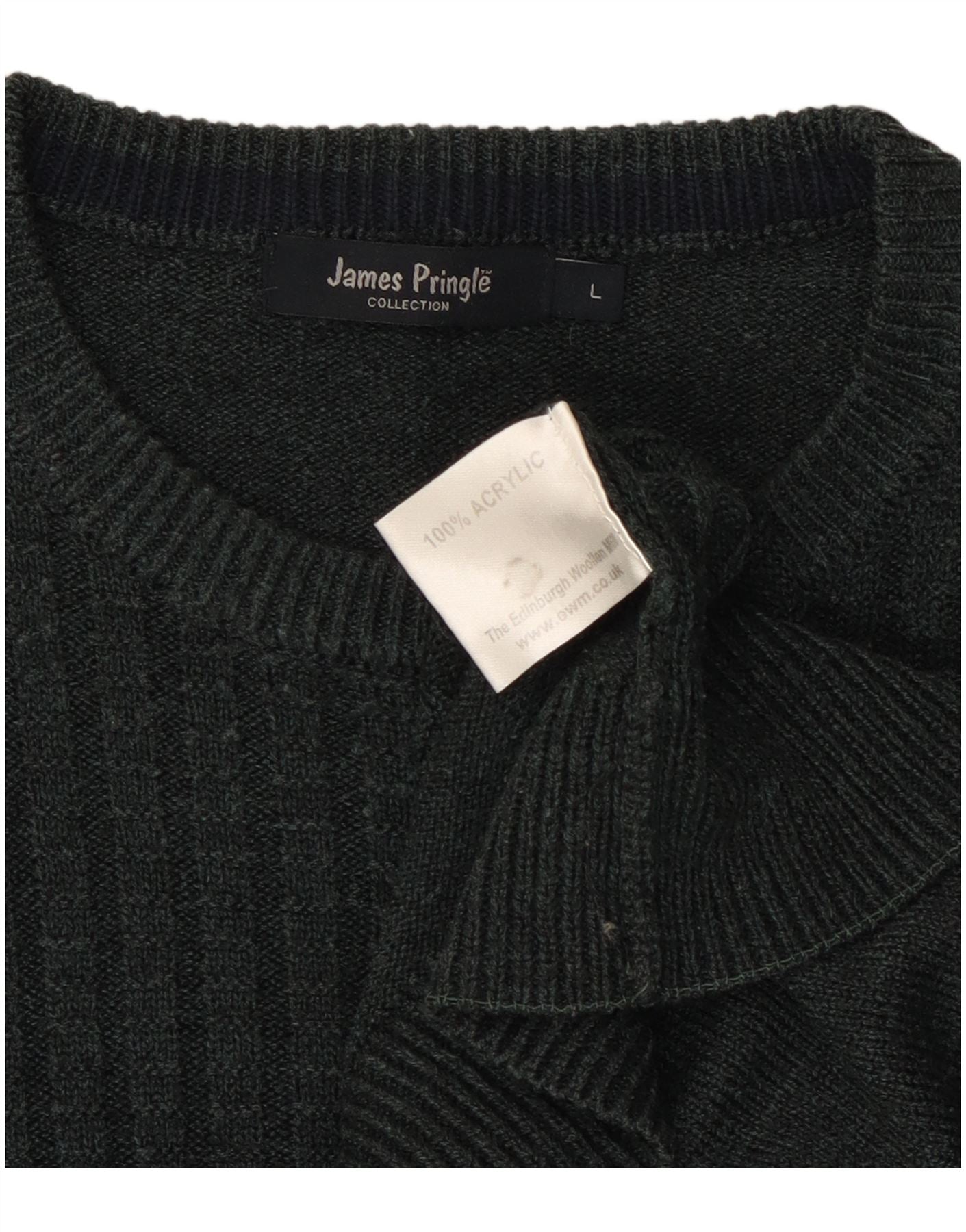 JAMES PRINGLE Męski sweter z okrągłym dekoltem, duży, zielony, akrylowy