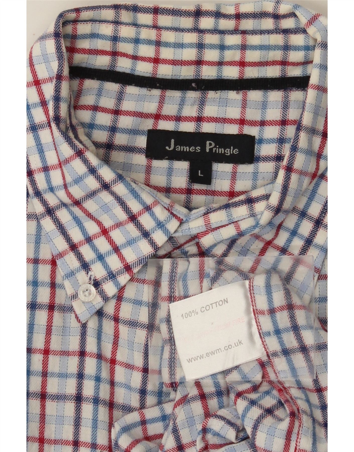 JAMES PRINGLE Męska koszula flanelowa w dużą niebieską kratę, bawełniana