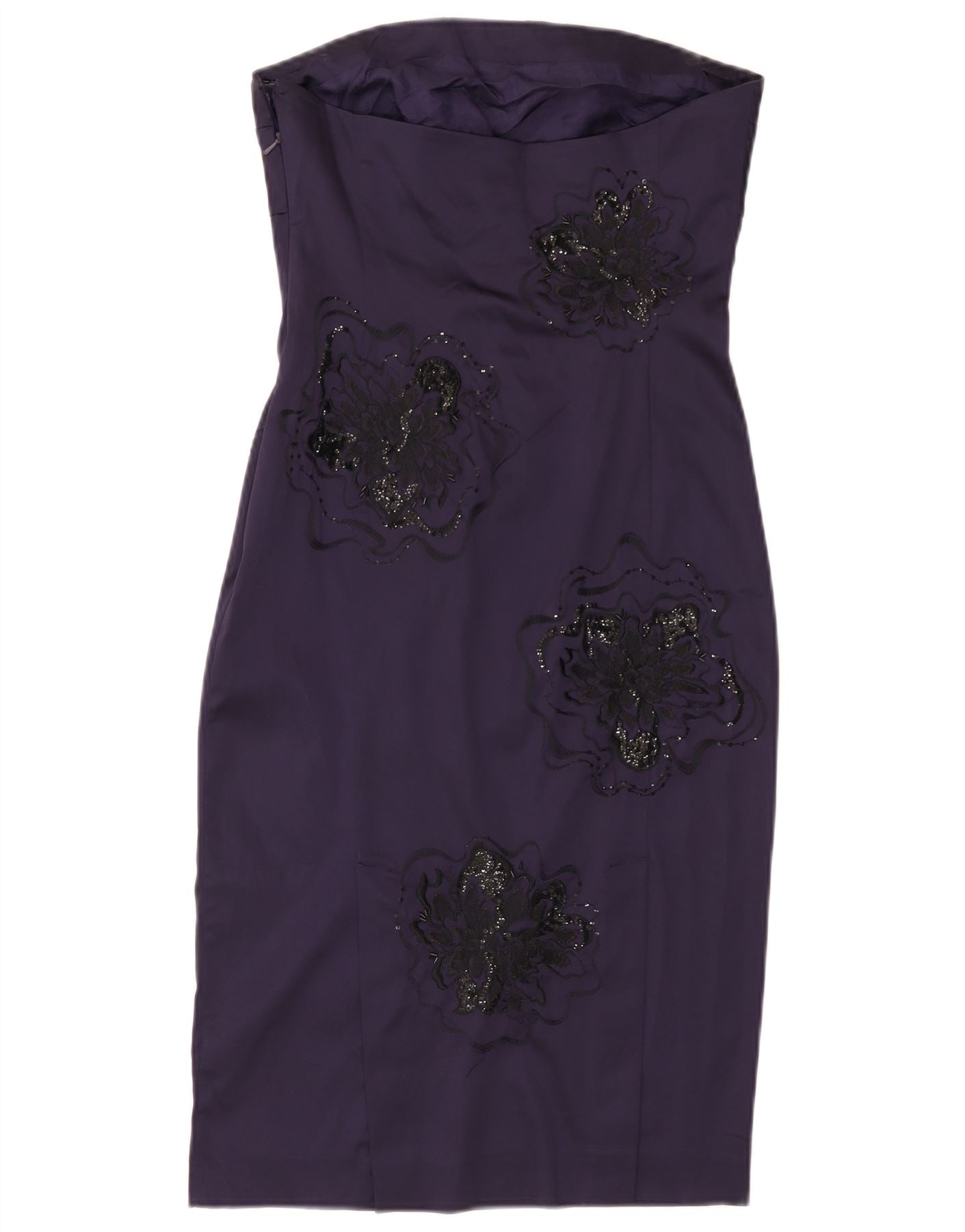 JANE NORMAN Damska obcisła sukienka bez ramiączek UK 12 Średni fiolet w kwiaty