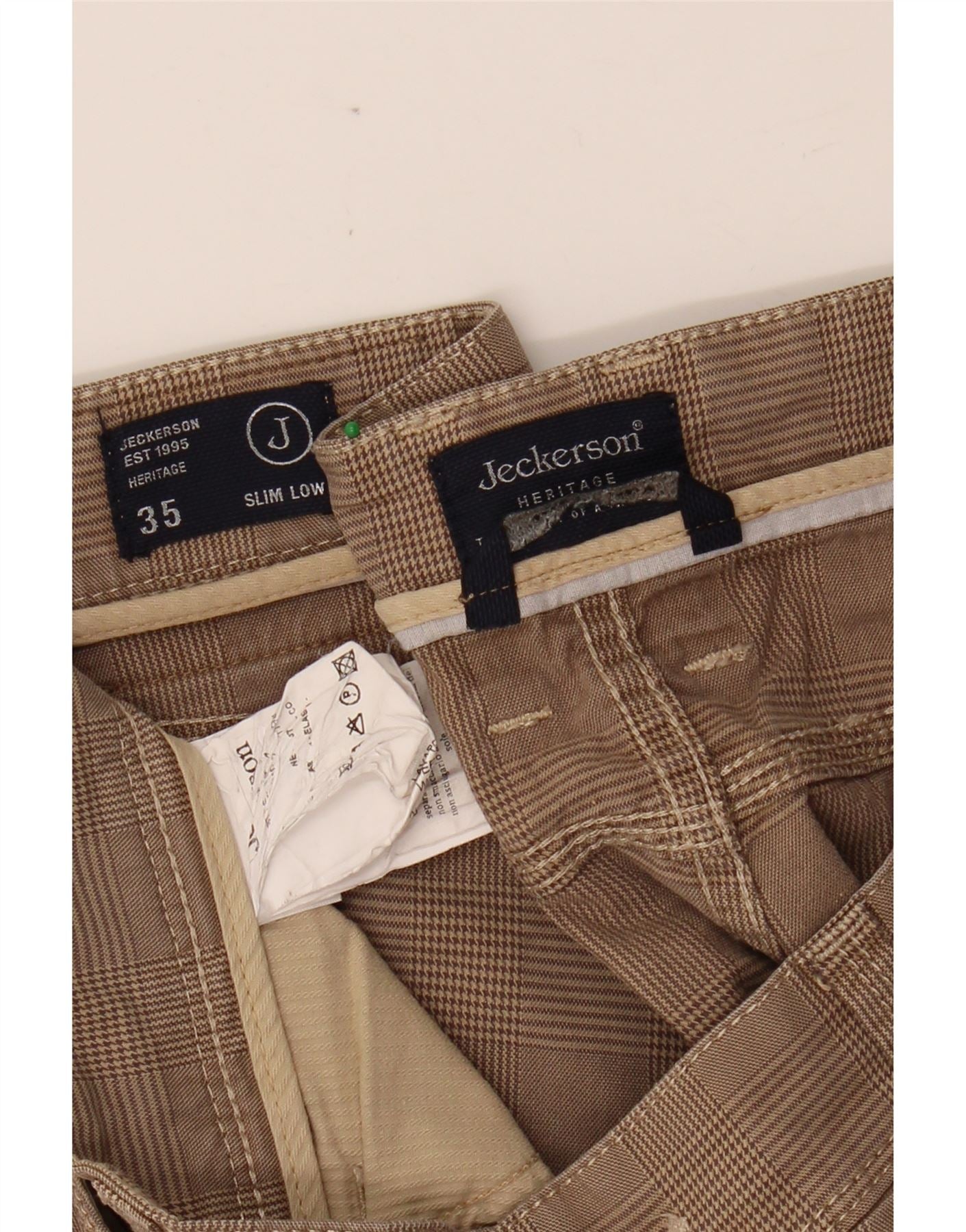 JECKERSON Mens Low Waist Slim Casual Trousers W35 L33 Brown Houndstooth