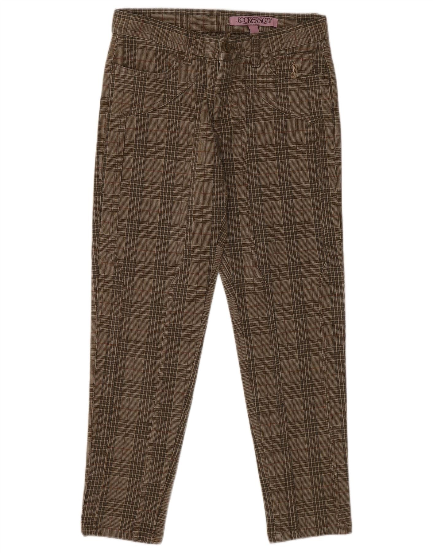 Damskie zwężane spodnie codzienne JECKERSON W25 L25 Brązowa bawełniana krata