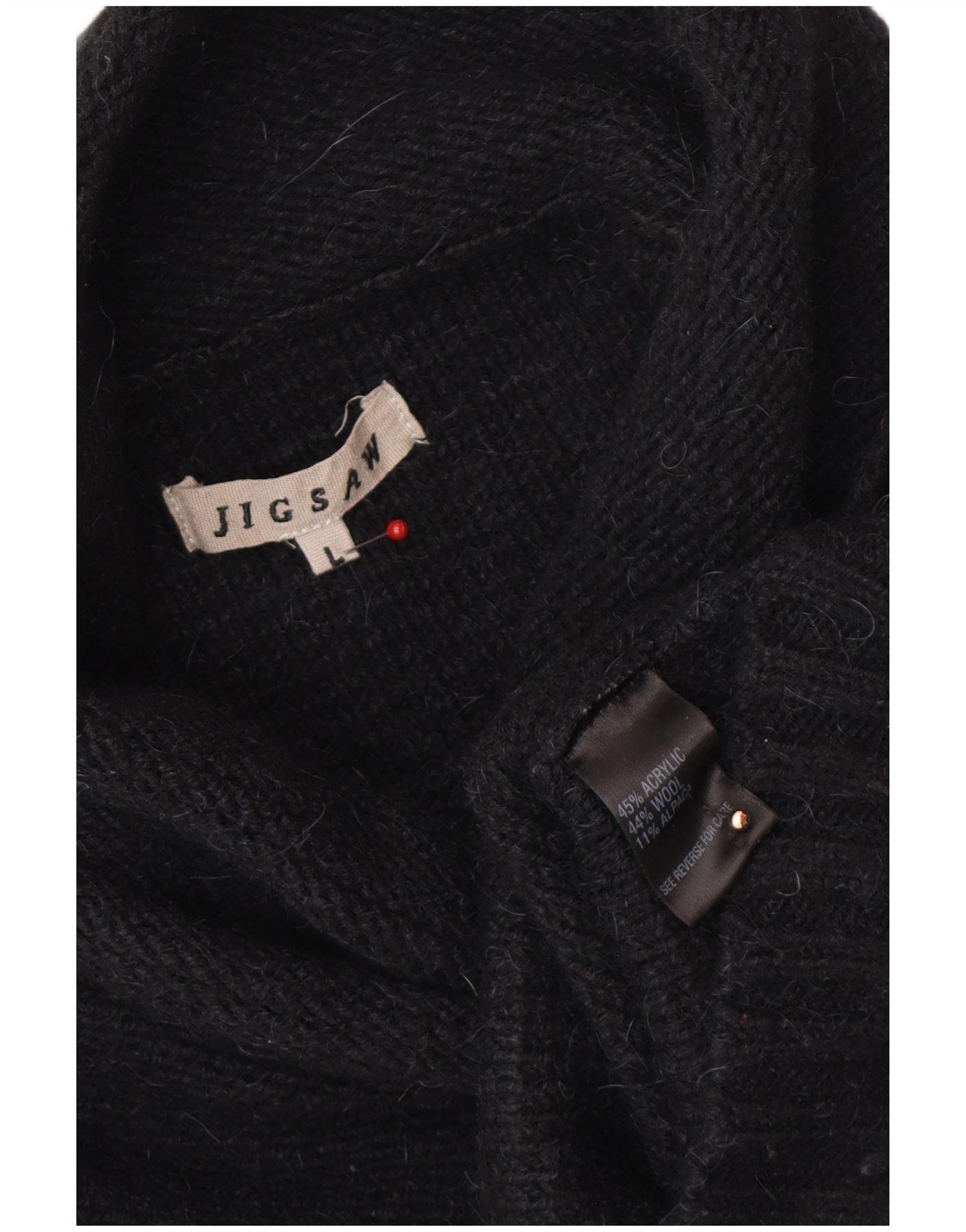 JIGSAW Womens Crop 3/4 Sleeve Roll Neck Jumper Sweater UK 14 Large Black