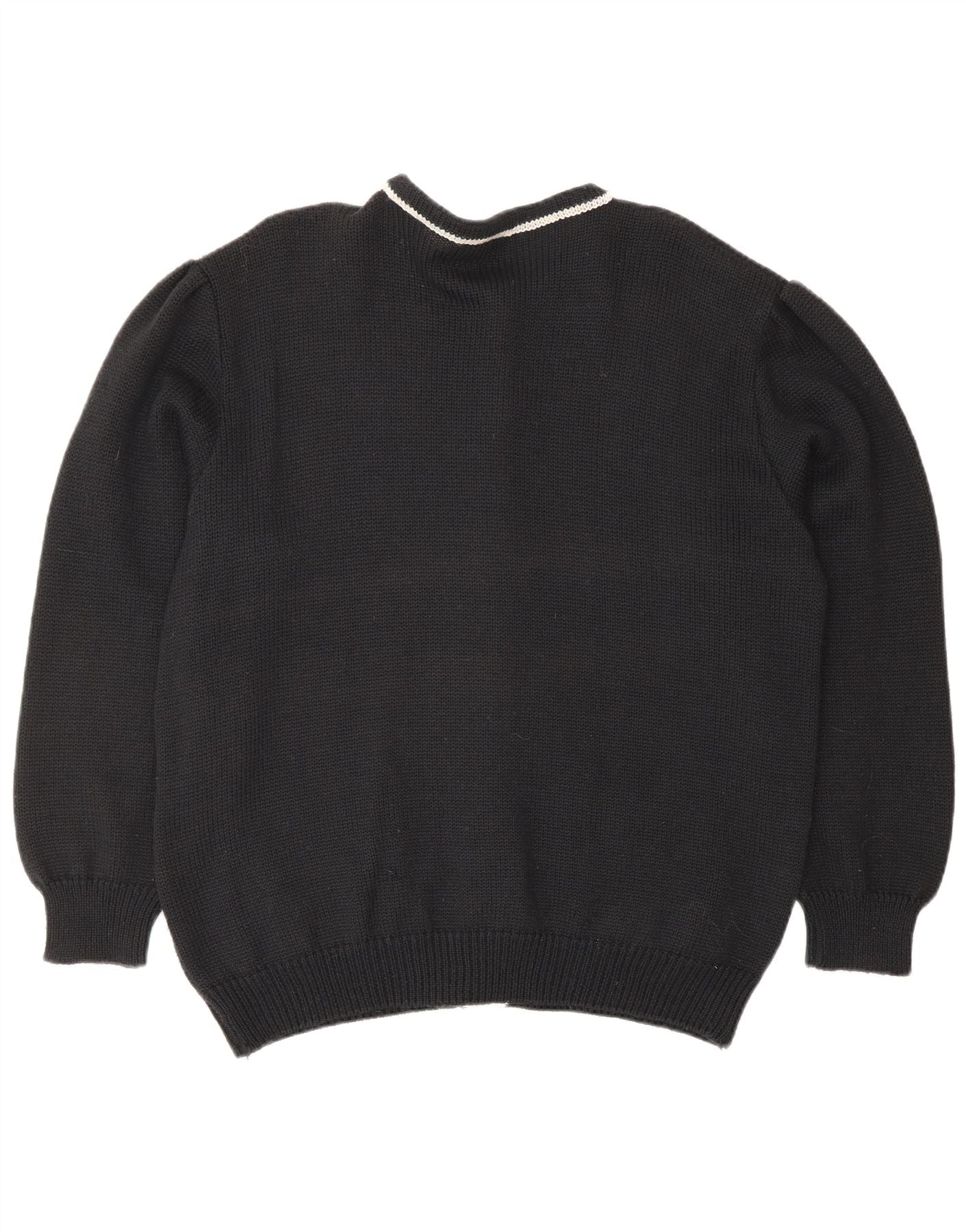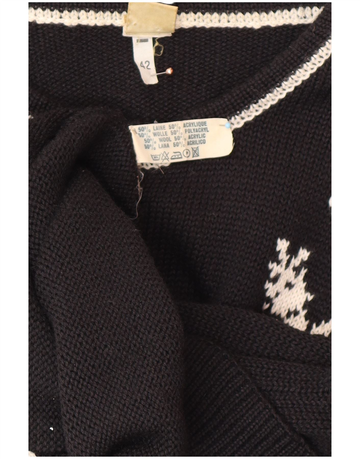 JORG PETERSON Damski sweter rozpinany EU 42, duża, czarna, wełniana w kwiaty