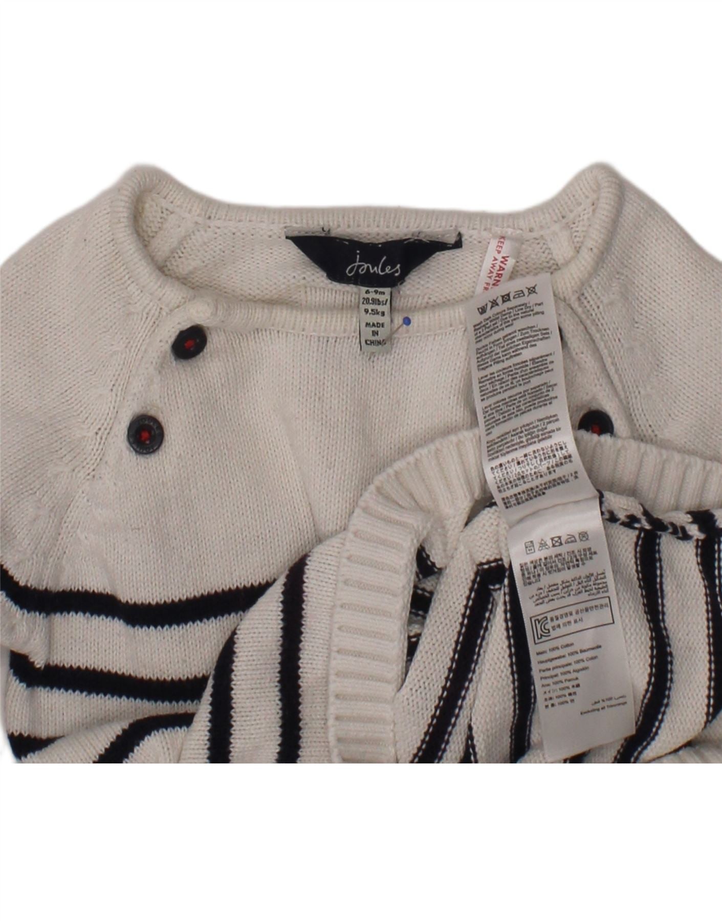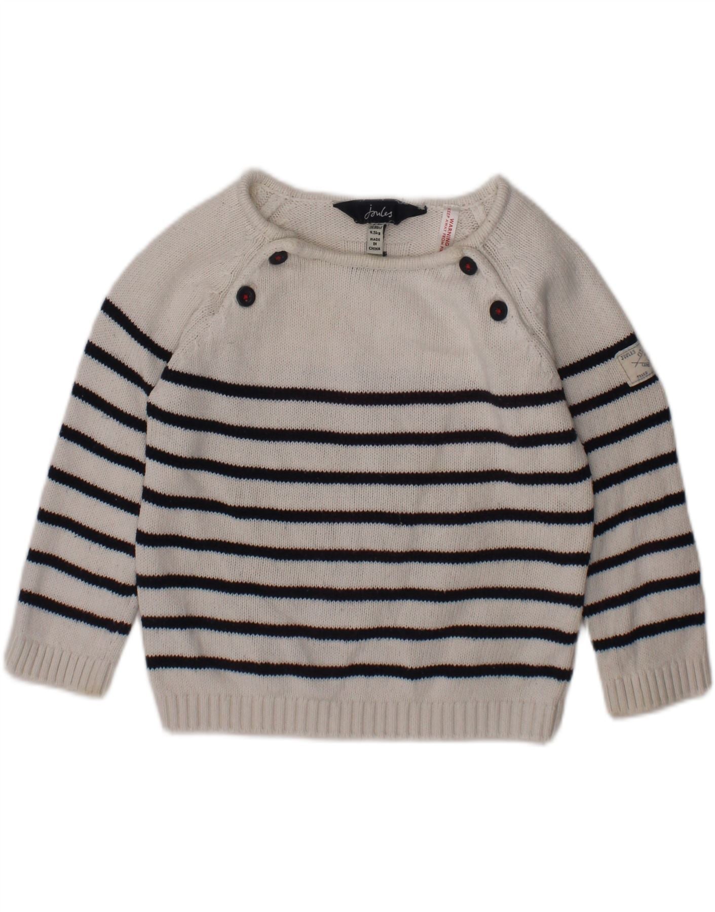 JOULES Baby Girls Boat Neck Jumper Sweater 6-9 Months White Striped Cotton