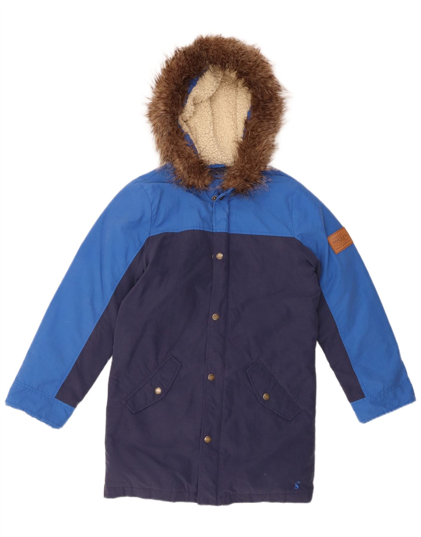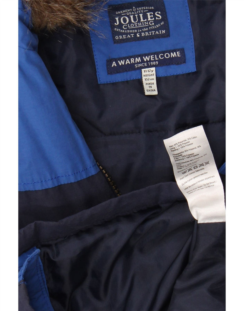 JOULES Boys Hooded Padded Jacket 11-12 Years Navy Blue Colourblock