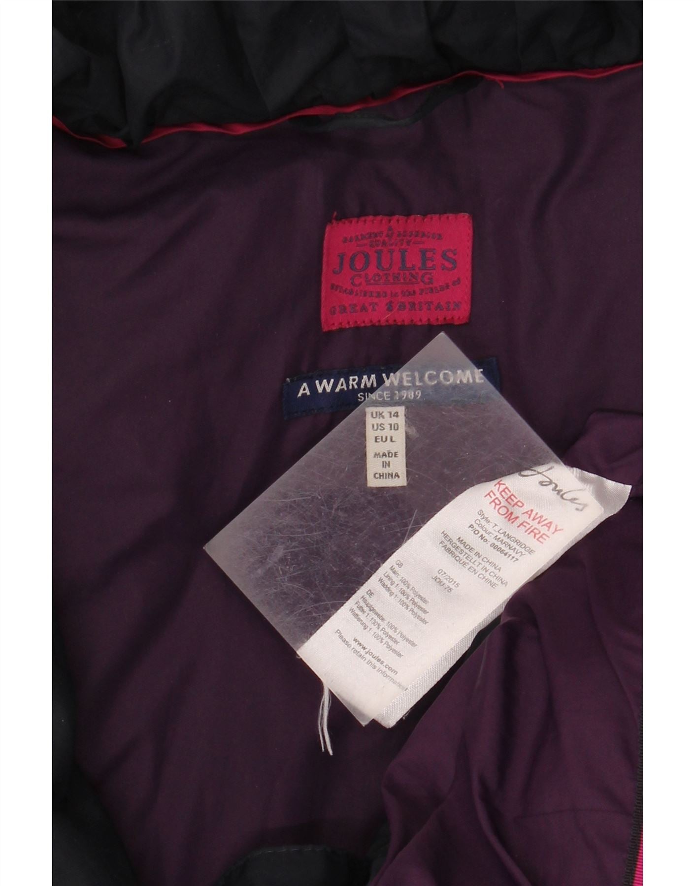 Damski płaszcz ocieplany JOULES UK 14, duży, granatowy, poliester