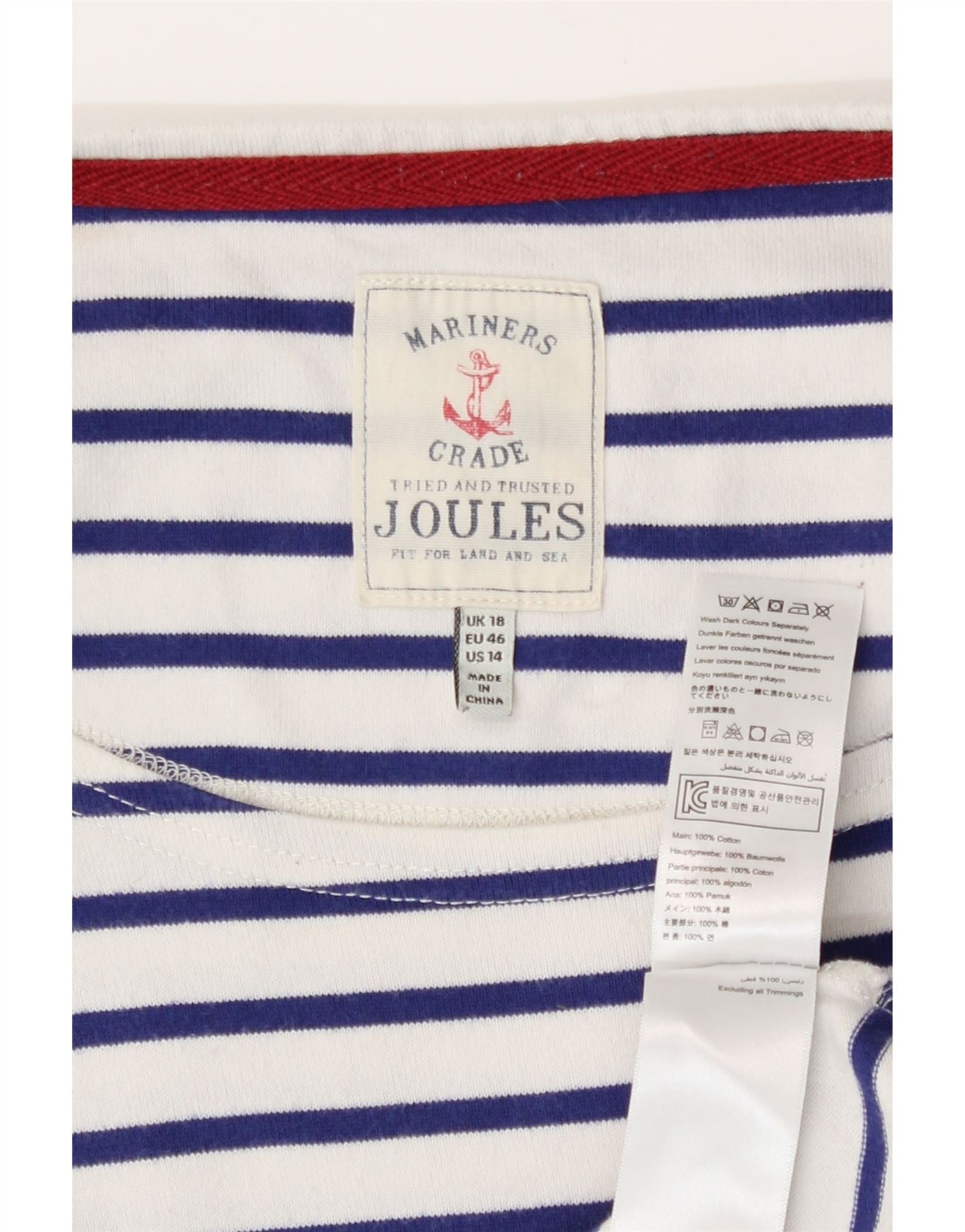 Damski top Joules z rękawem 3/4, UK 18 XL, bawełniany w białe paski