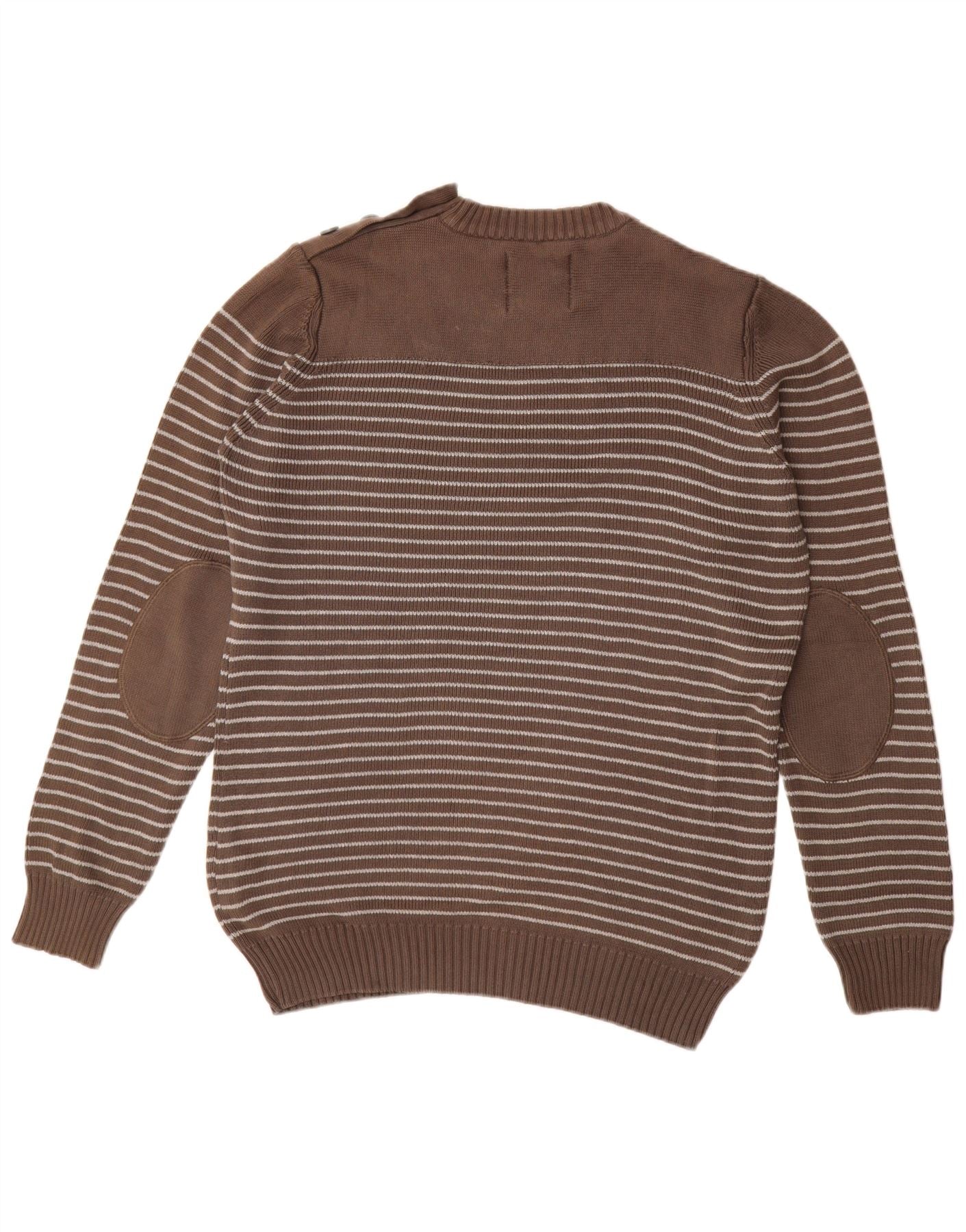 JULES Męski sweter z okrągłym dekoltem, duży, bawełniany w brązowe paski