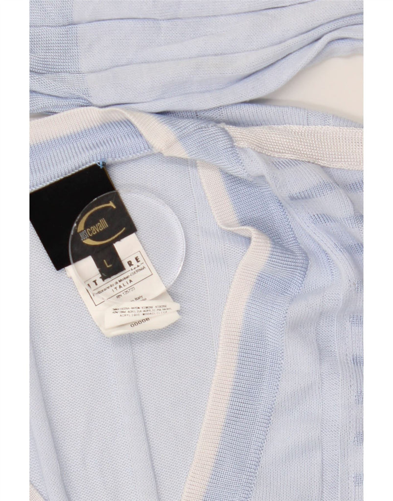 JUST CAVALLI Womens Cardigan Sweater UK 16 Large Blue Colourblock Viscose