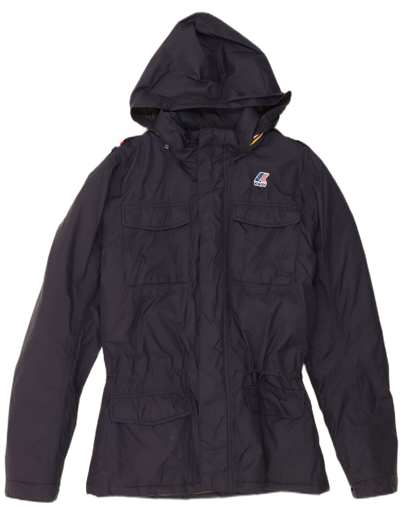 K-WAY Mens Hooded Padded Jacket UK 36 Small Navy Blue Polyamide