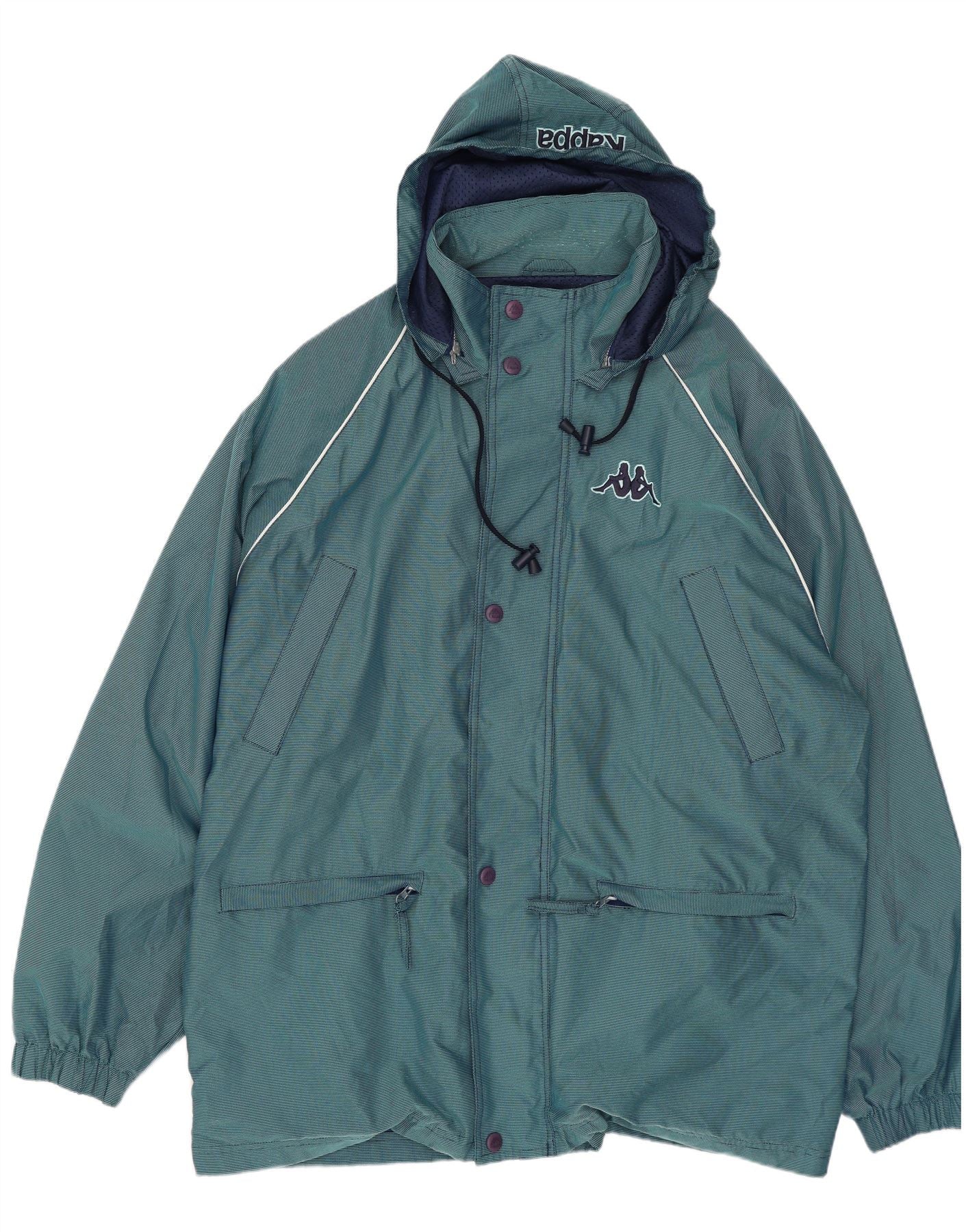 Męska kurtka przeciwdeszczowa z kapturem i grafiką KAPPA UK 42 XL Niebieski nylon