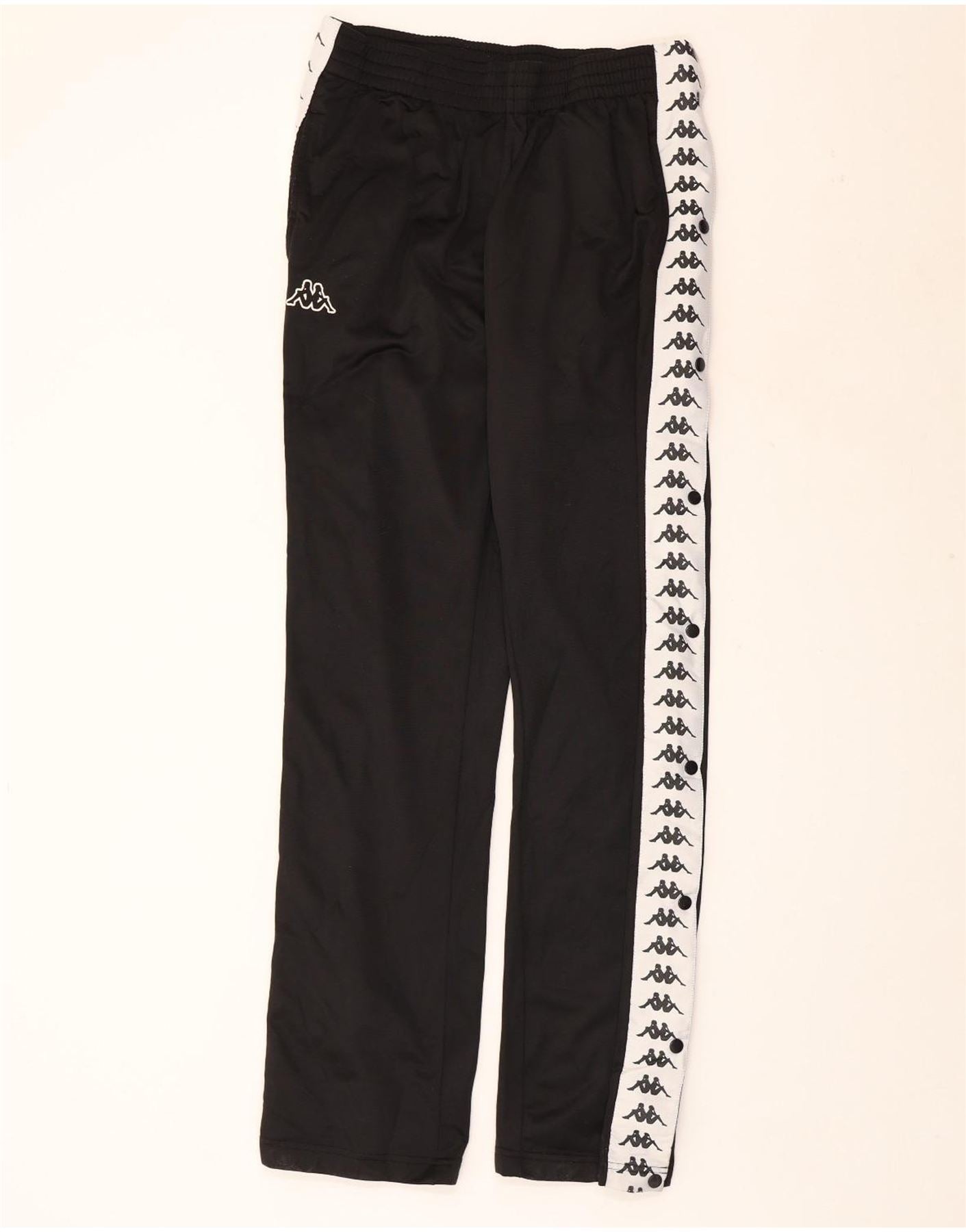 Męskie spodnie dresowe KAPPA z grafiką, duży, czarny poliester z blokami kolorów