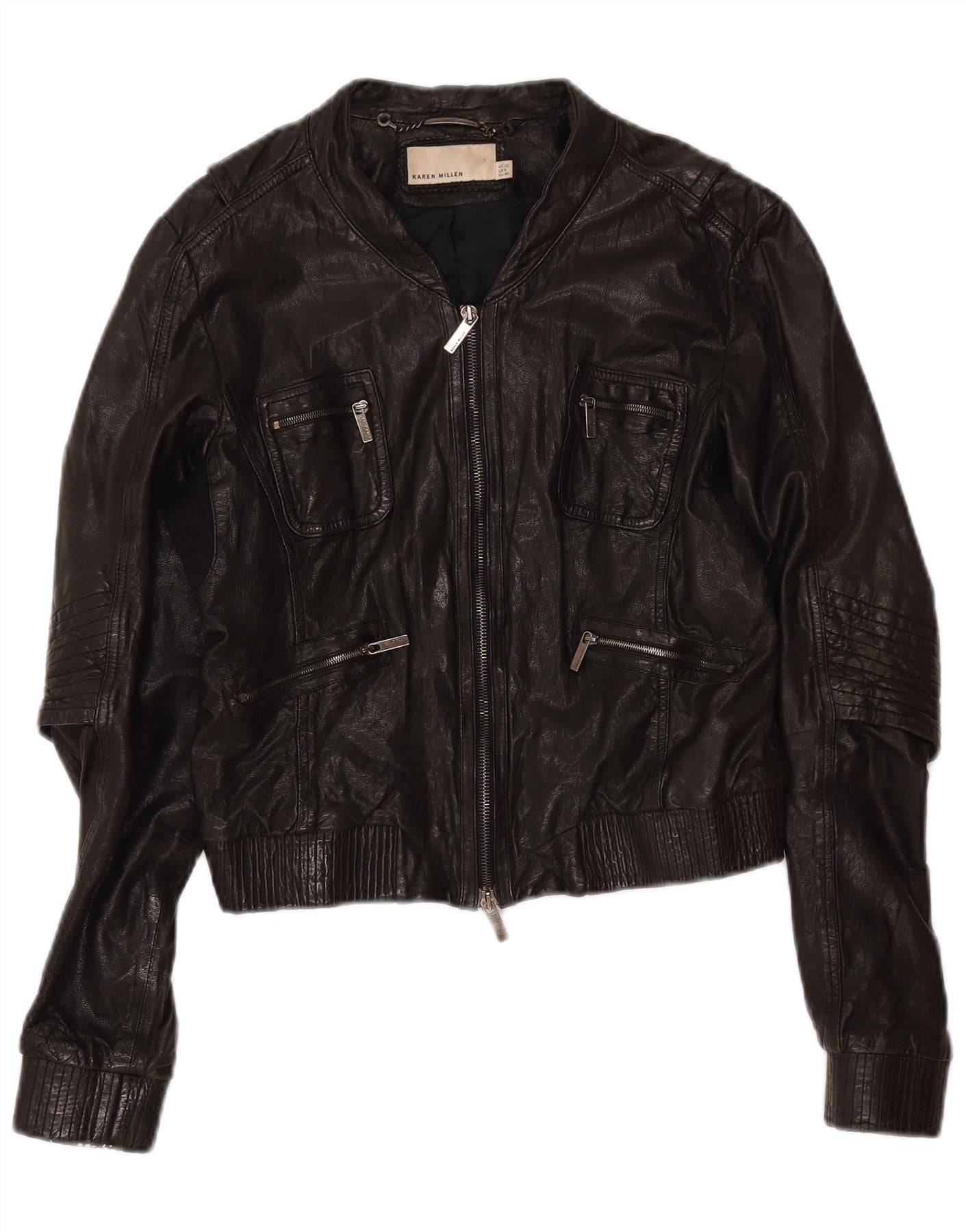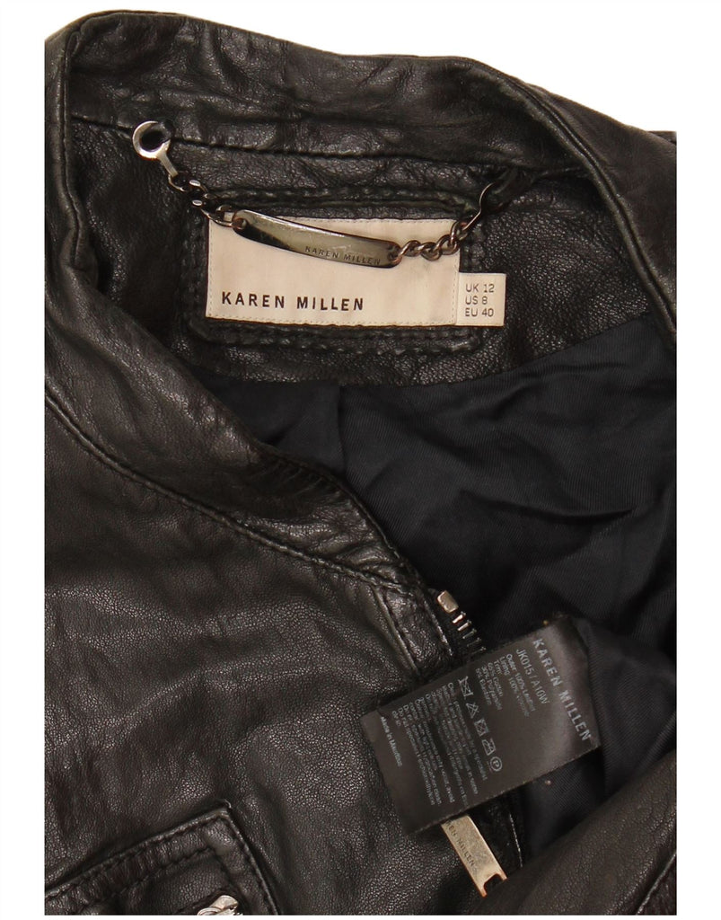 KAREN MILLEN Womens Bomber Bomber Jacket UK 12 Medium Black Leather