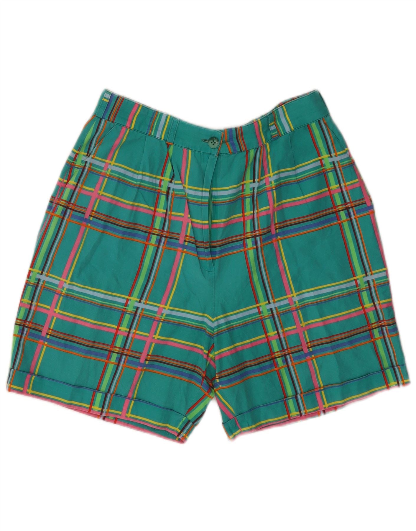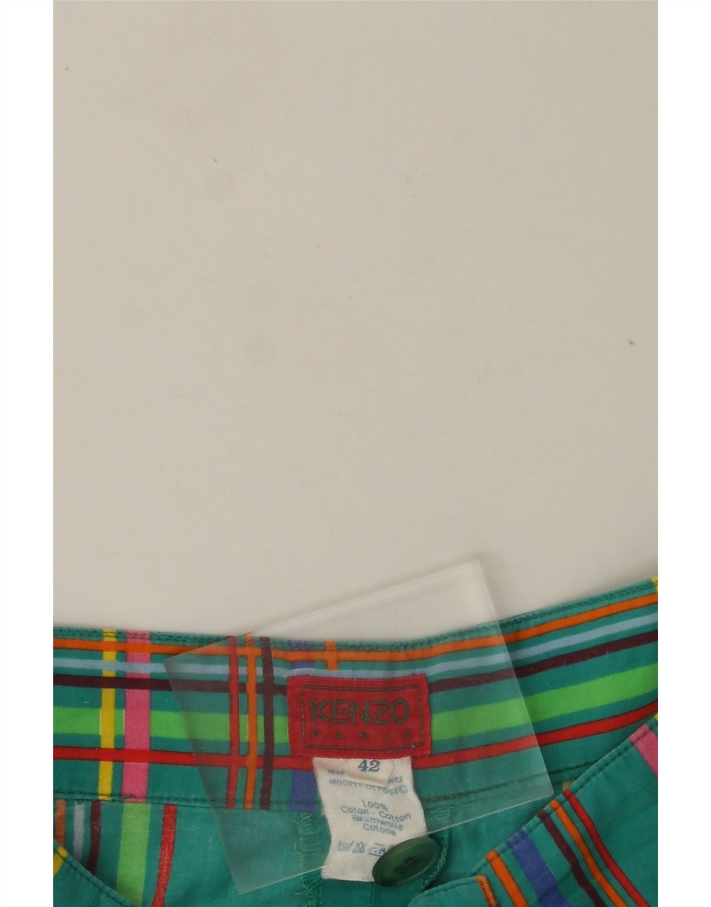 Damskie spodenki chino KENZO z wysokim stanem EU 42, duże, W30, bawełna w zieloną kratę