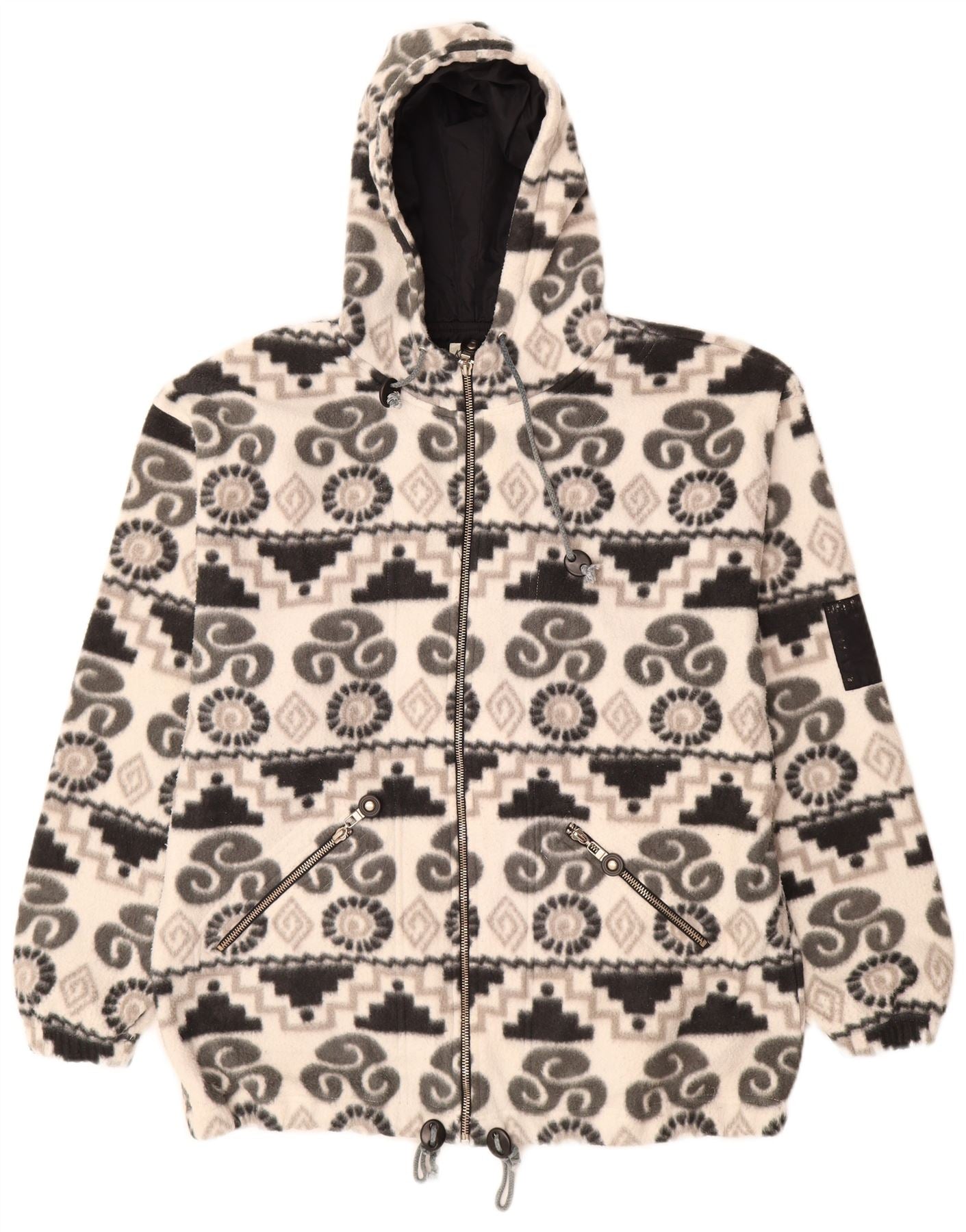 Damska kurtka polarowa z kapturem KNOCK OUT UK 14, średnia, biała, geometryczna