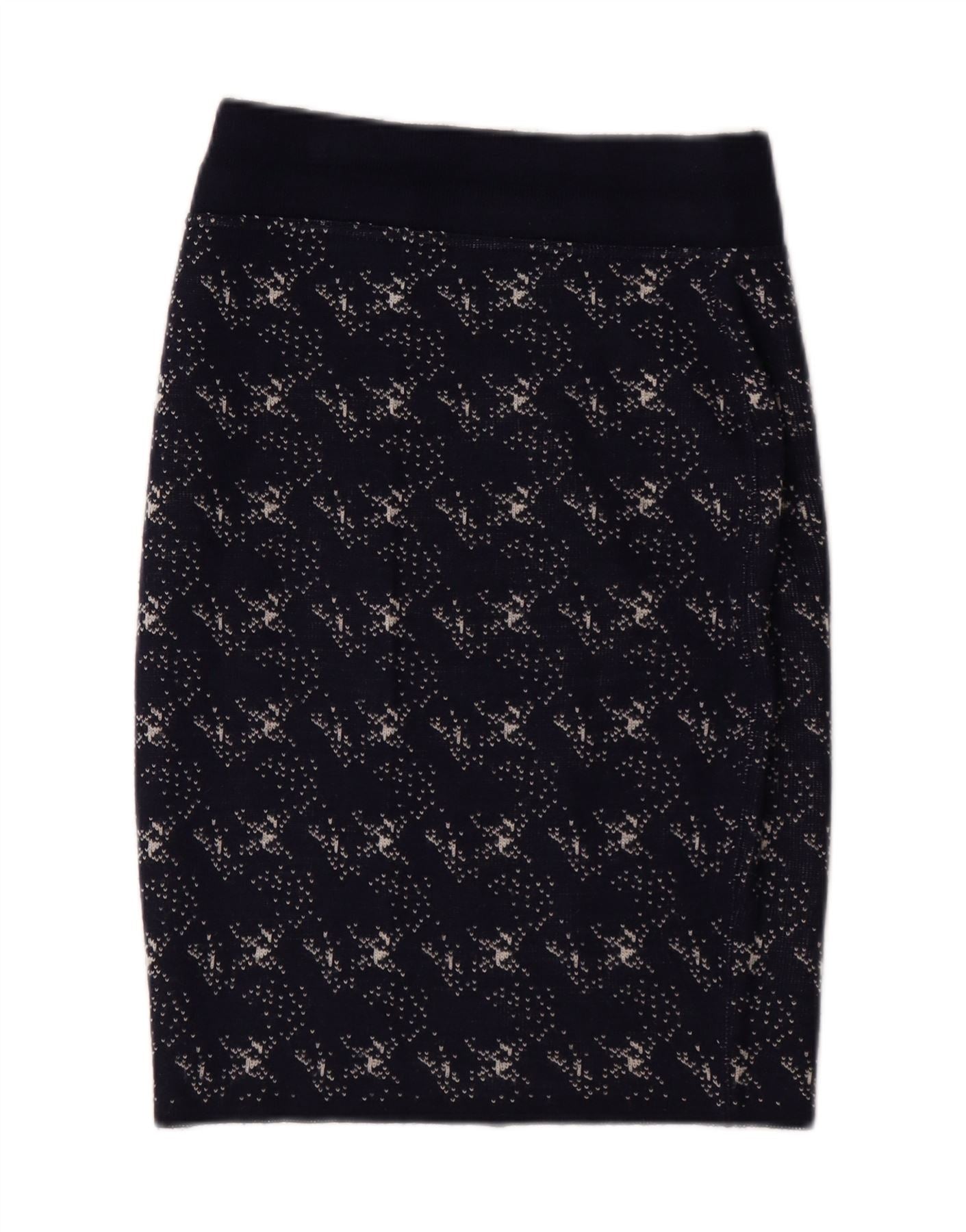 KOOKAI Womens Abstract Pattern Straight Skirt W24 XS Navy Blue Wool