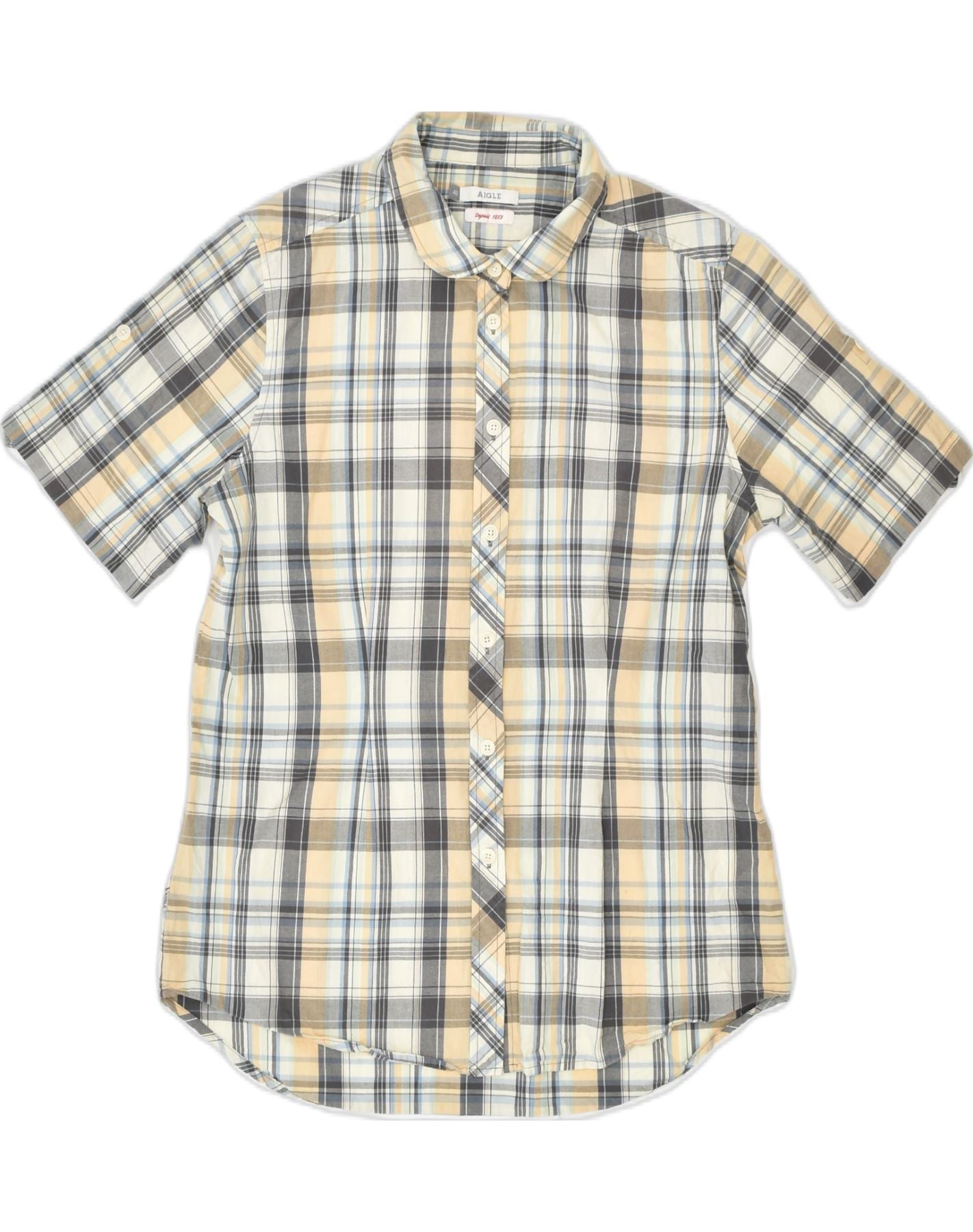 Koszula męska z krótkim rękawem AIGLE, rozmiar 40, bawełniana w średnią beżową kratę