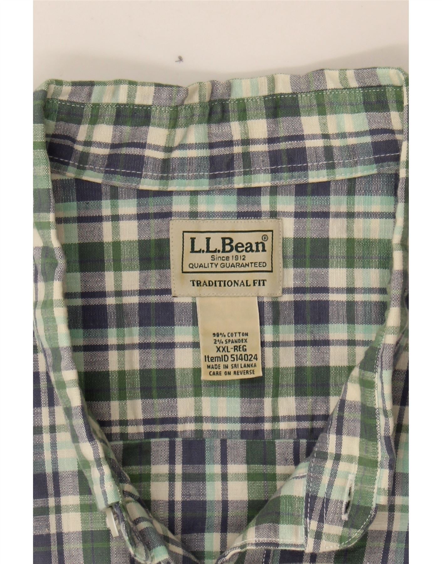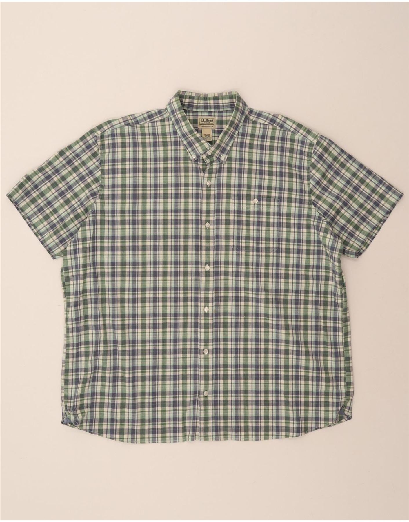 L.L.BEAN Mens Traditional Fit Short Sleeve Shirt 2XL Green Check Cotton