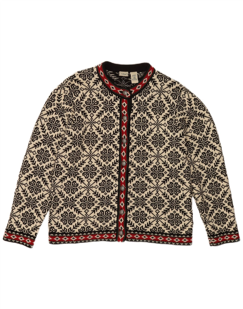 L.L.BEAN Womens Cardigan Sweater UK 16 Large Black Fair Isle Cotton