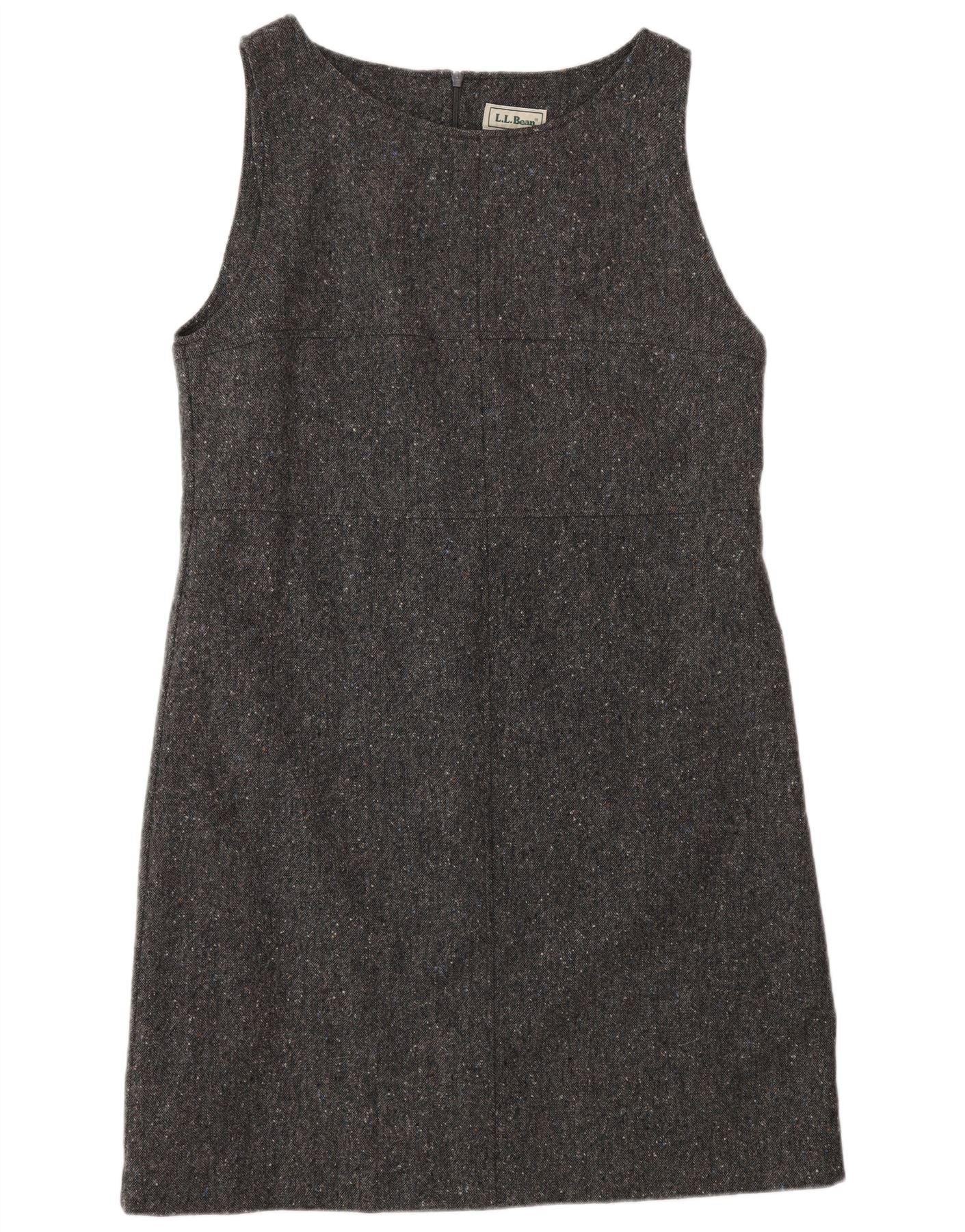 - AI Description: This L.L.Bean womens shift dress is crafted from woven wool, offering a substantial yet soft feel. Its flecked grey pattern adds subtle visual texture. The dress features a classic round neck and a sleeveless design. A regular fit ensures comfortable wear. A discreet zip closure at the back provides a smooth finish. This versatile piece embodies understated elegance.