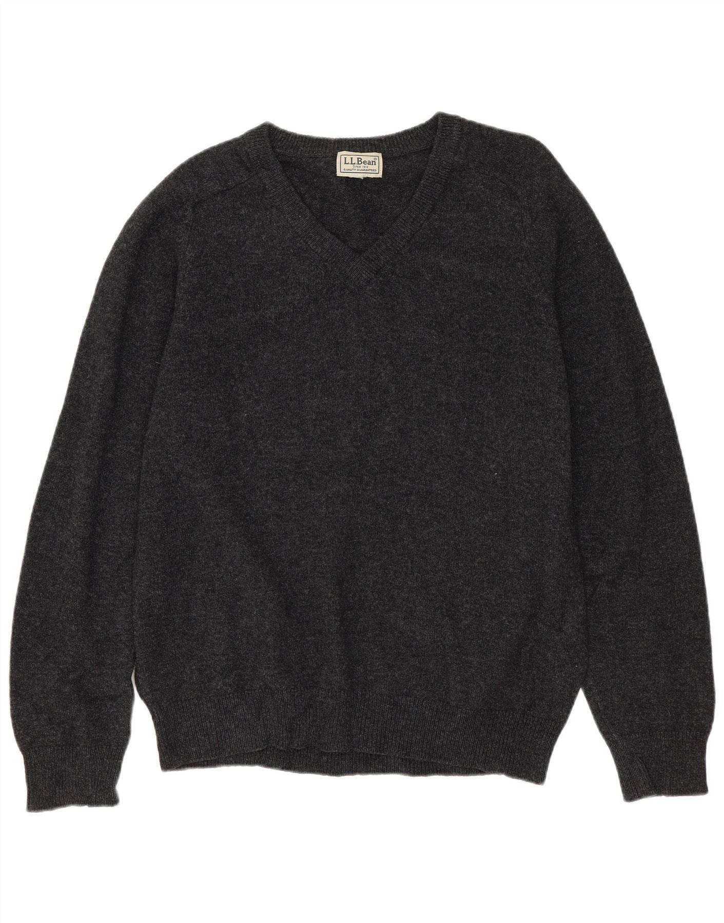 L.L.BEAN Damski sweter z dekoltem w kształcie litery V, UK 16, duży, szary, wełniany