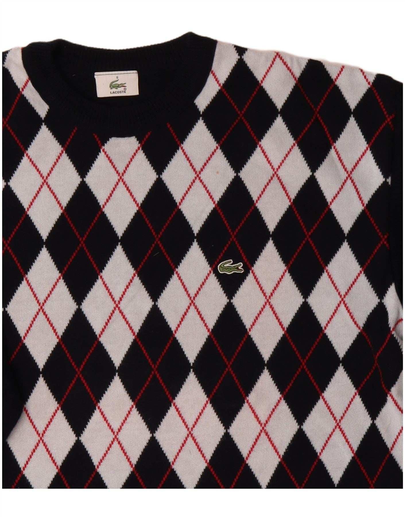 Męski sweter Lacoste z okrągłym dekoltem, rozmiar 6 XL, granatowy Argyle/Diament