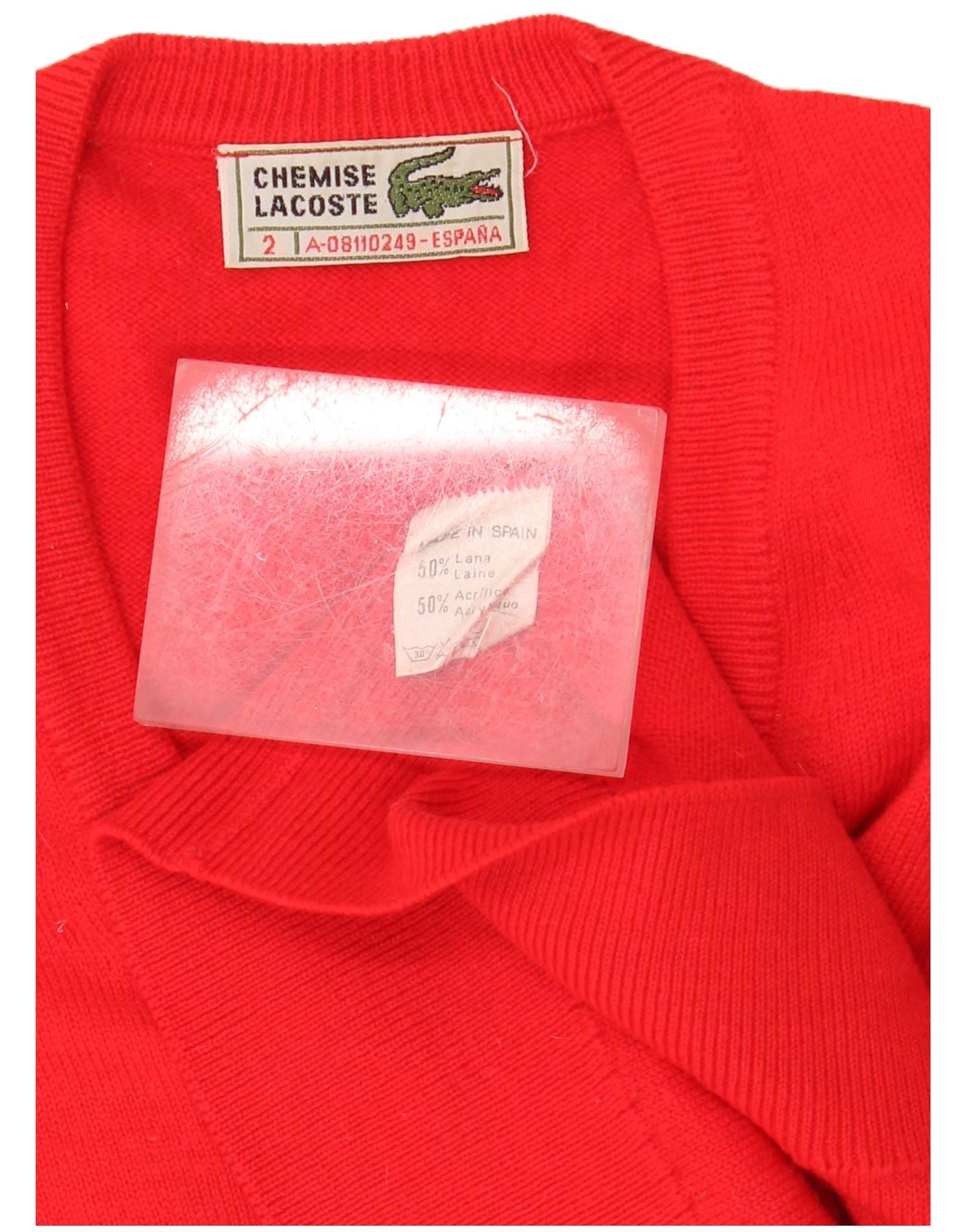 Męski sweter LACOSTE o luźnym kroju i dekoltem w kształcie litery V, rozmiar 2 XS, czerwona wełna