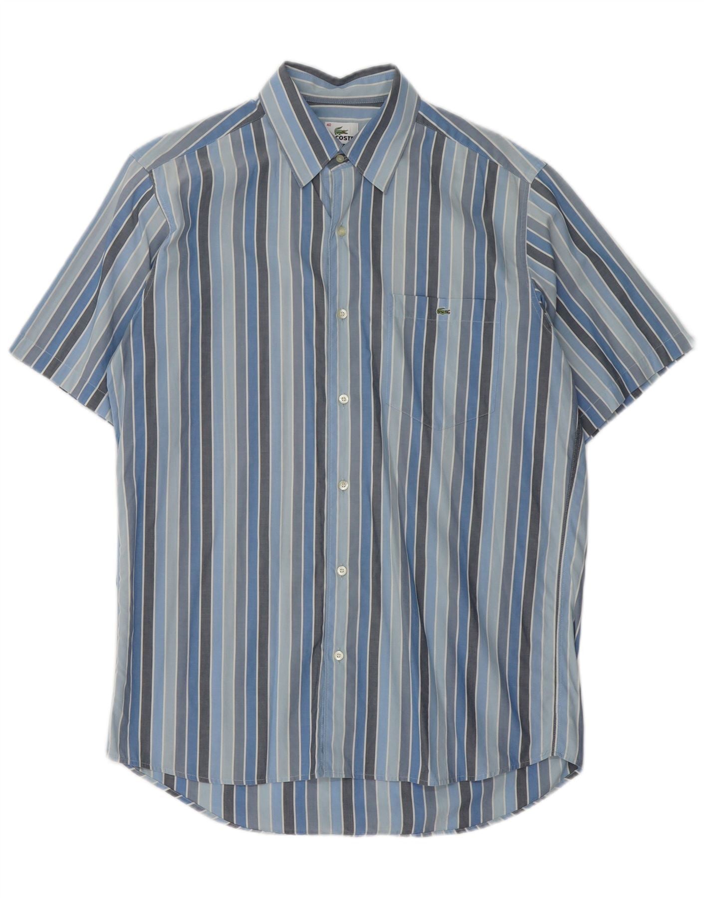 Koszula męska z krótkim rękawem LACOSTE, rozmiar 40, bawełniana w średnie niebieskie paski