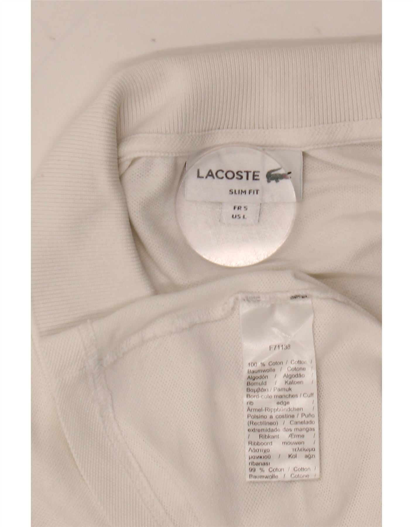Męska koszulka polo Lacoste Slim Fit, rozmiar 5, duża, biała, bawełniana
