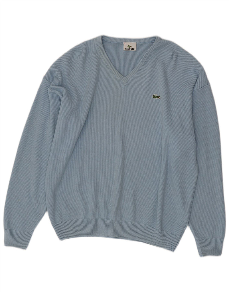 Męski sweter LACOSTE z dekoltem w kształcie litery V, rozmiar 5, duży, niebieski, bawełniany