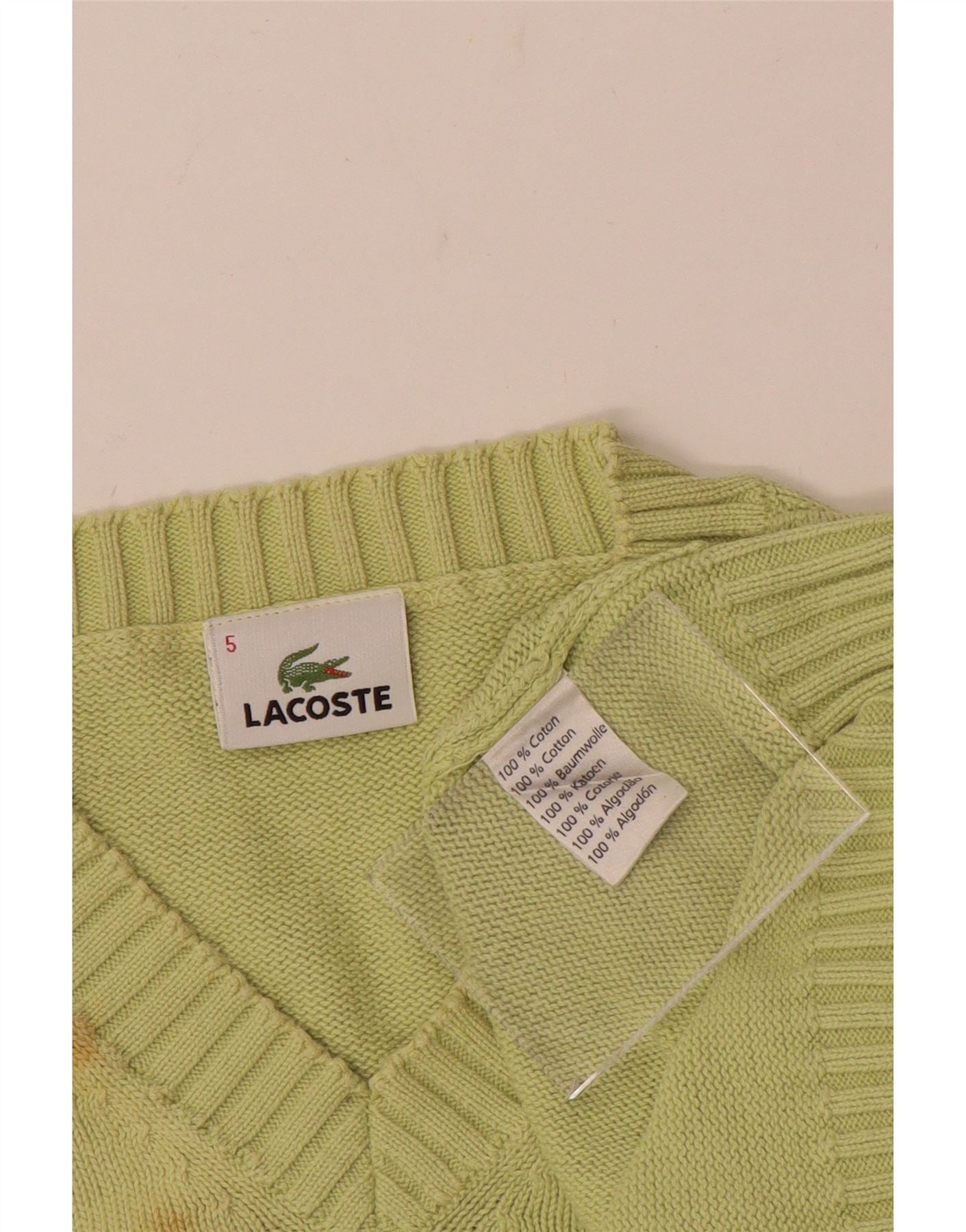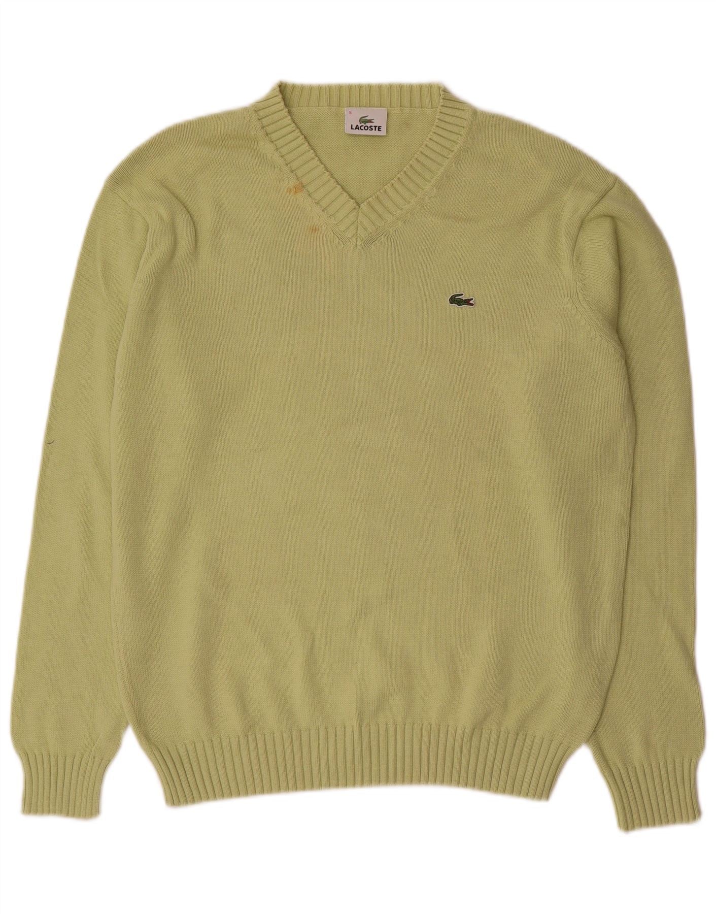 Męski sweter LACOSTE z dekoltem w kształcie litery V, rozmiar 5, duży, zielony, bawełniany