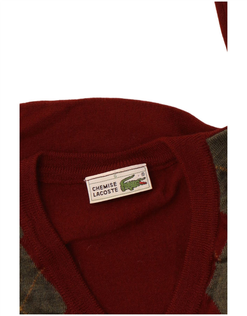 Męski sweter LACOSTE z dekoltem w kształcie litery V, rozmiar 6 XL, czerwony Argyle/Diament
