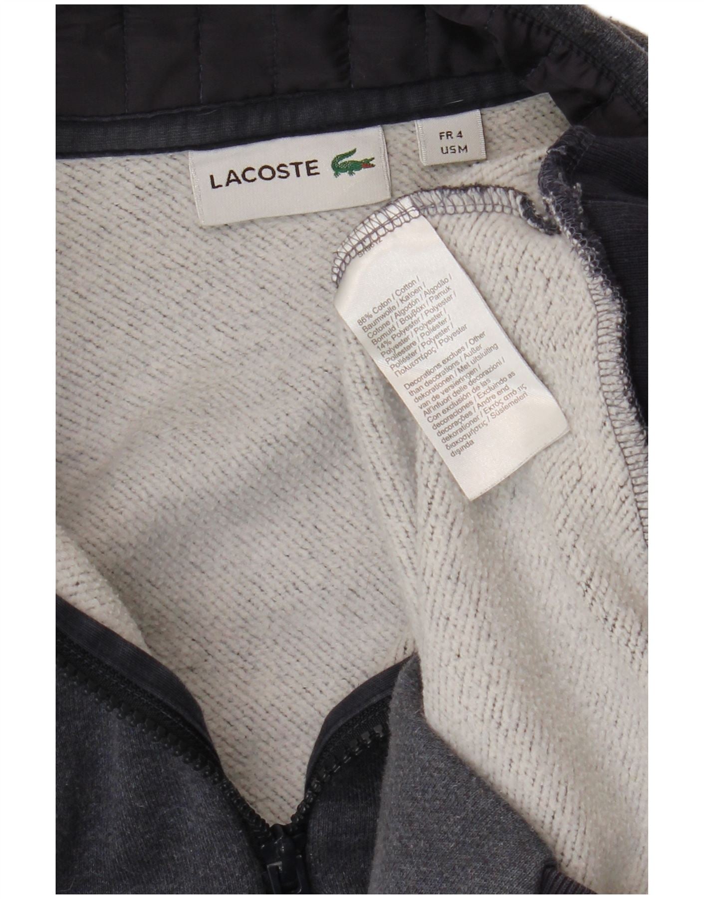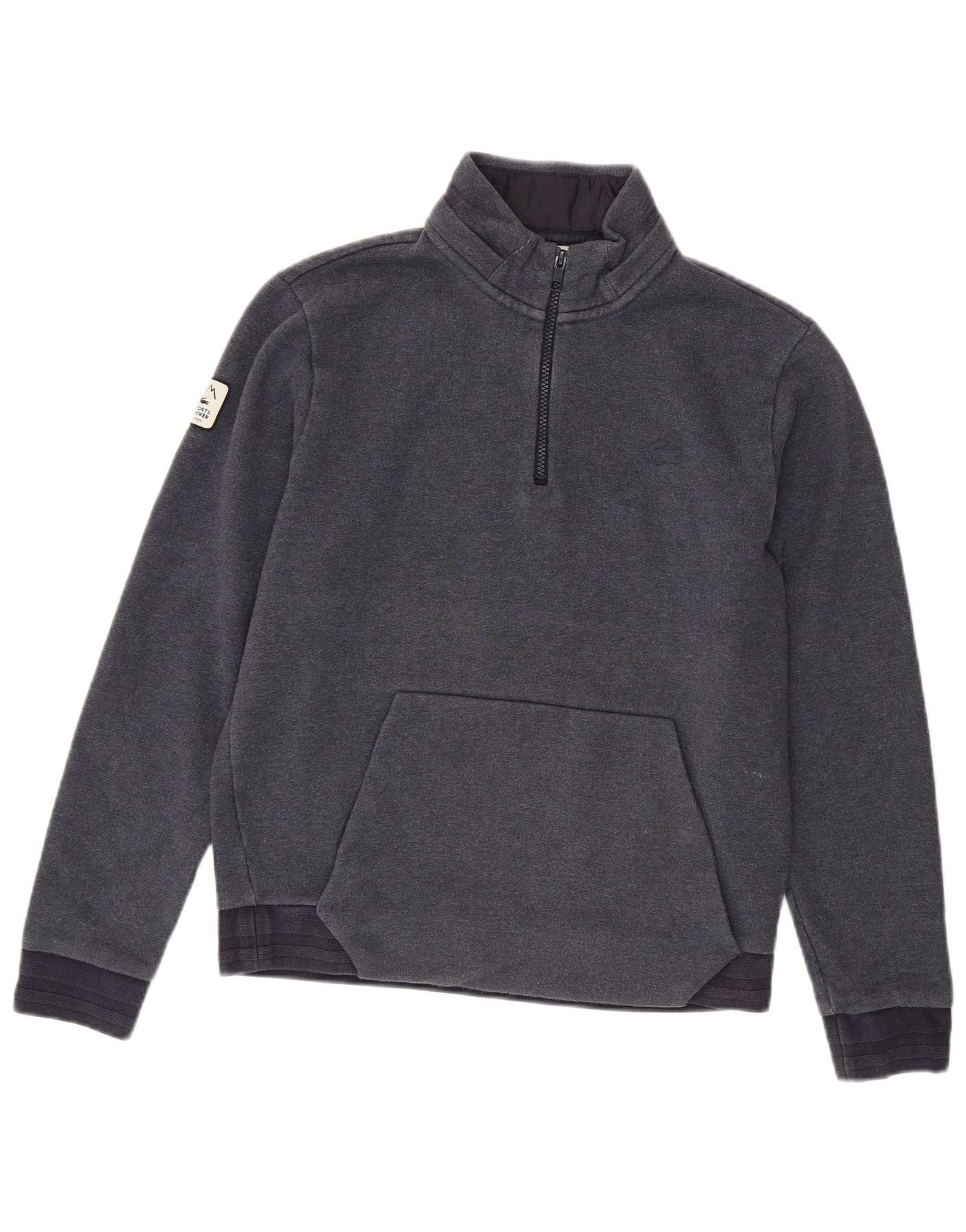LACOSTE Mens Zip Neck Sweatshirt Jumper Size 4 Medium Grey Cotton