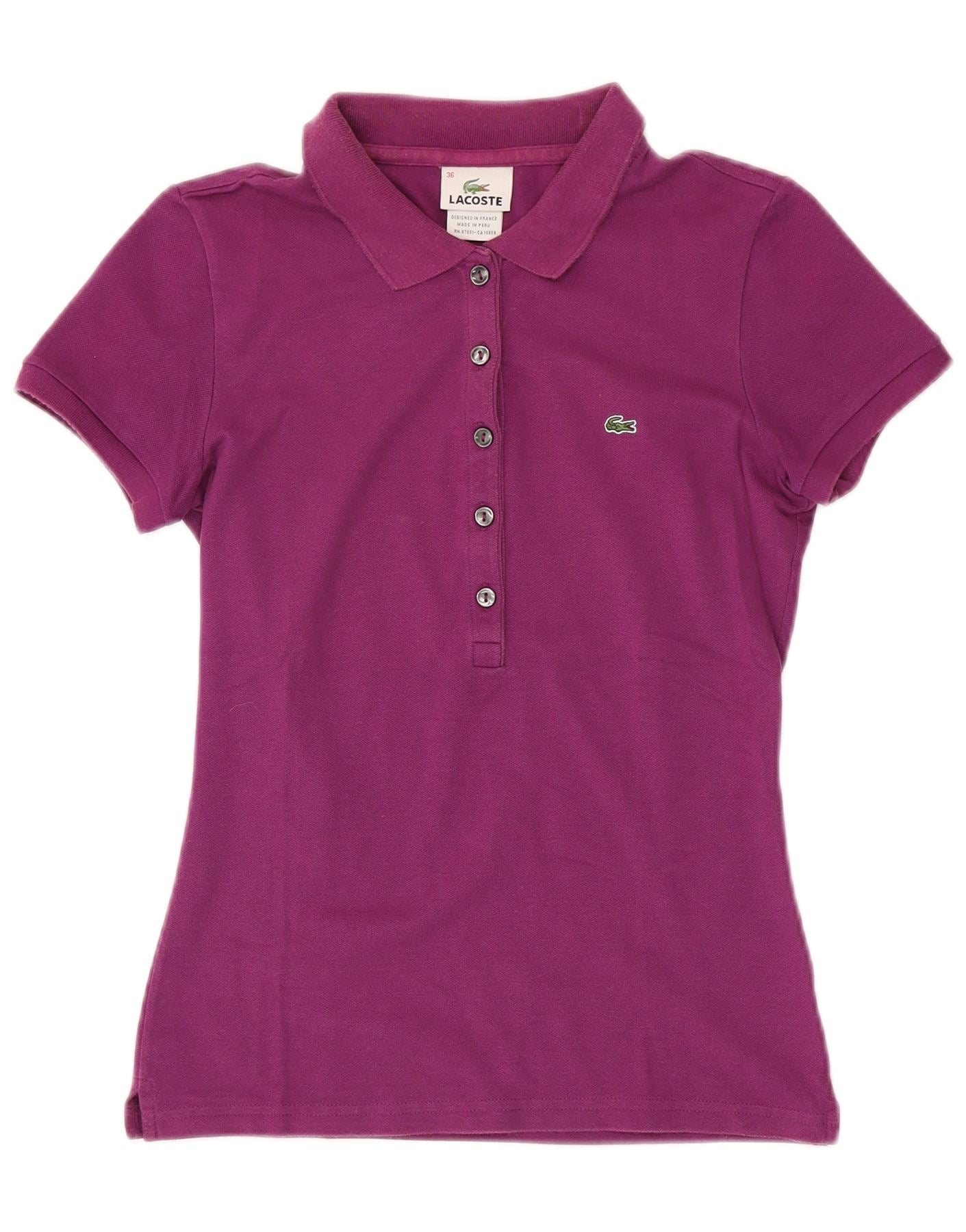 Damska koszulka polo LACOSTE, rozmiar 36, mała, fioletowa, bawełniana