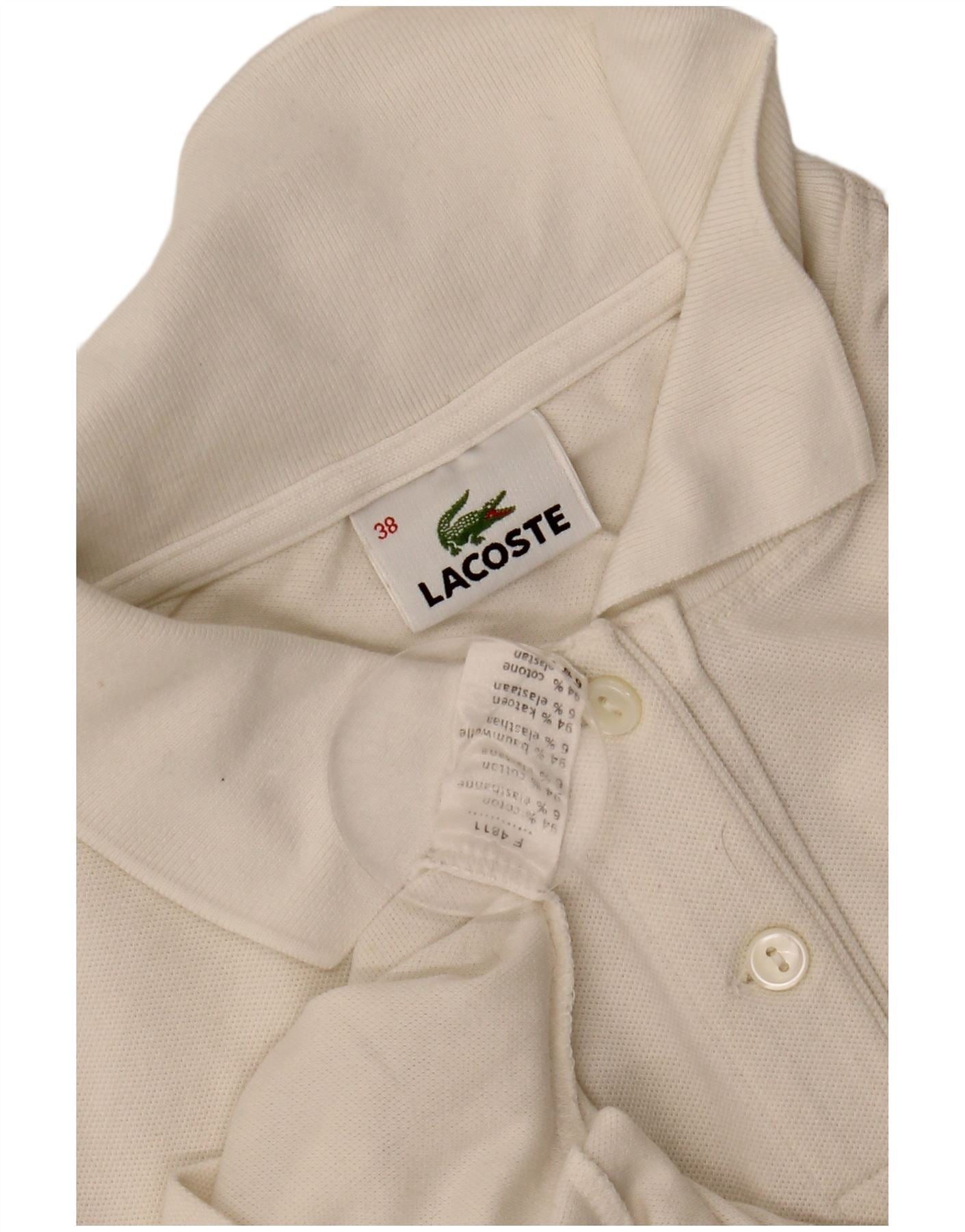 Damska koszulka polo LACOSTE, rozmiar 38, średnia, biała, bawełniana