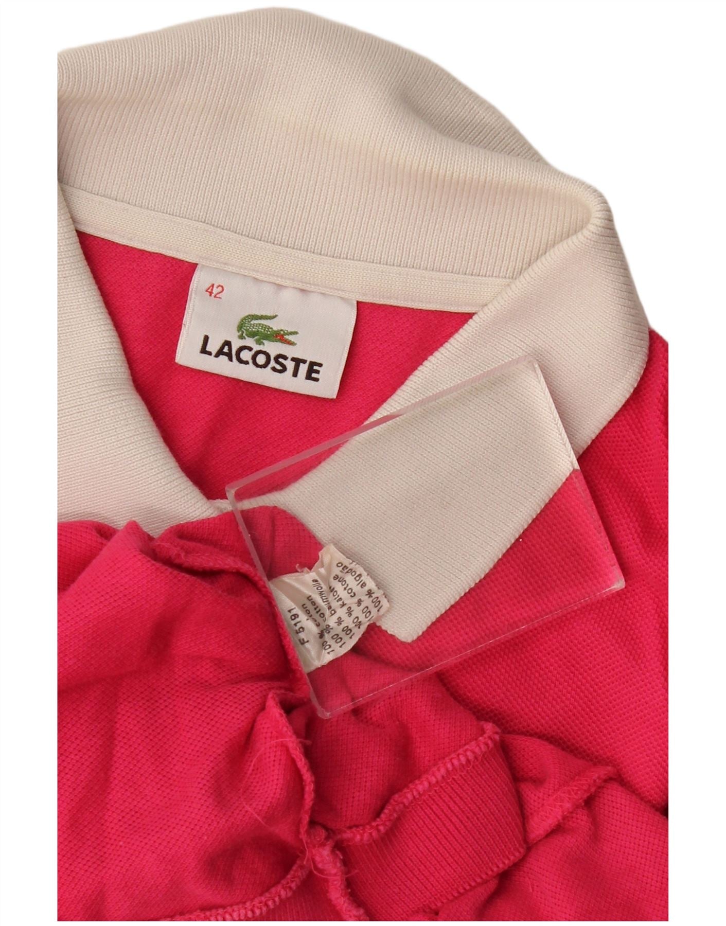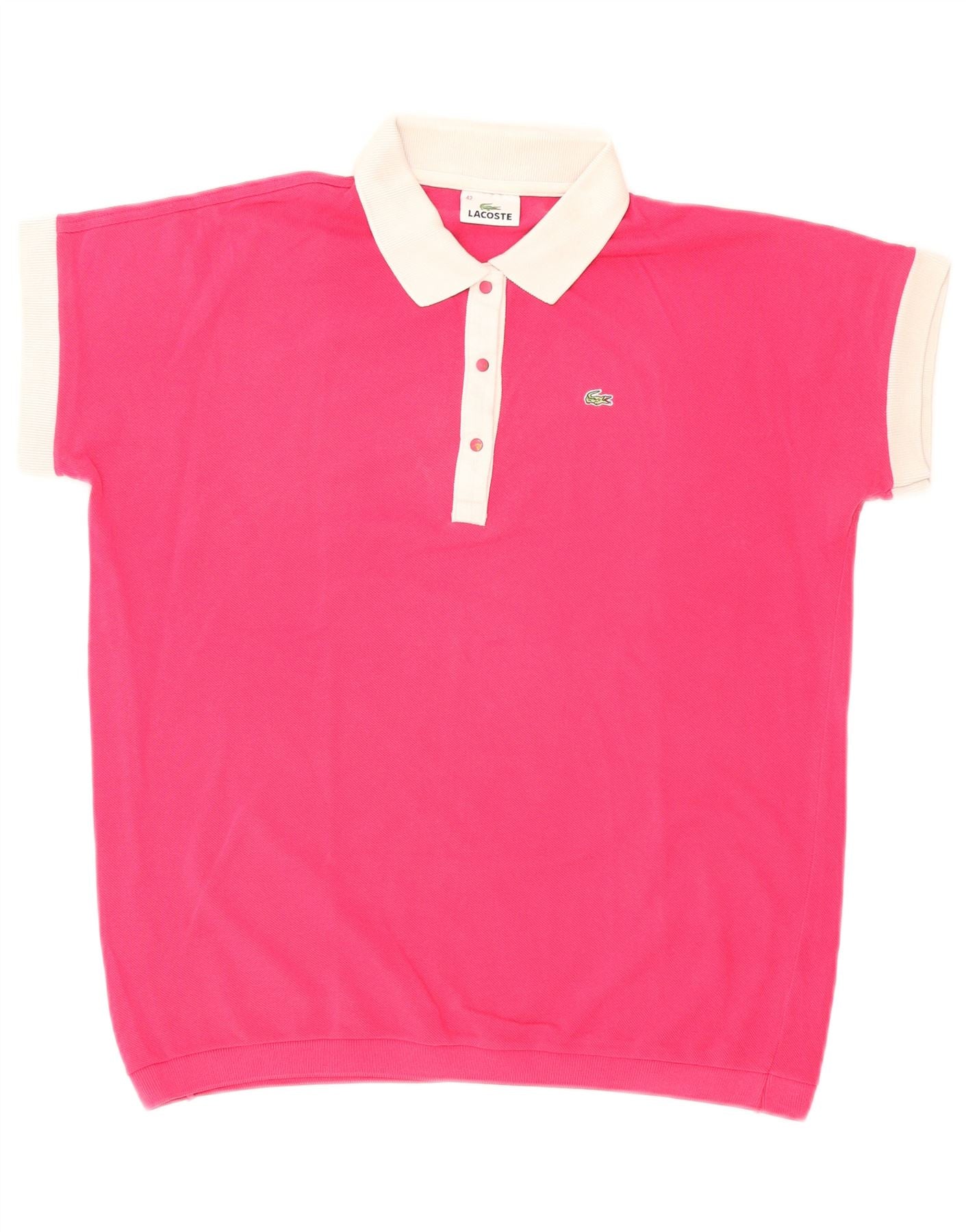 Home > Damskie > Odzież Depopa > Damska koszulka polo LACOSTE, rozmiar 42, duża, różowa, bawełniana w bloki kolorów