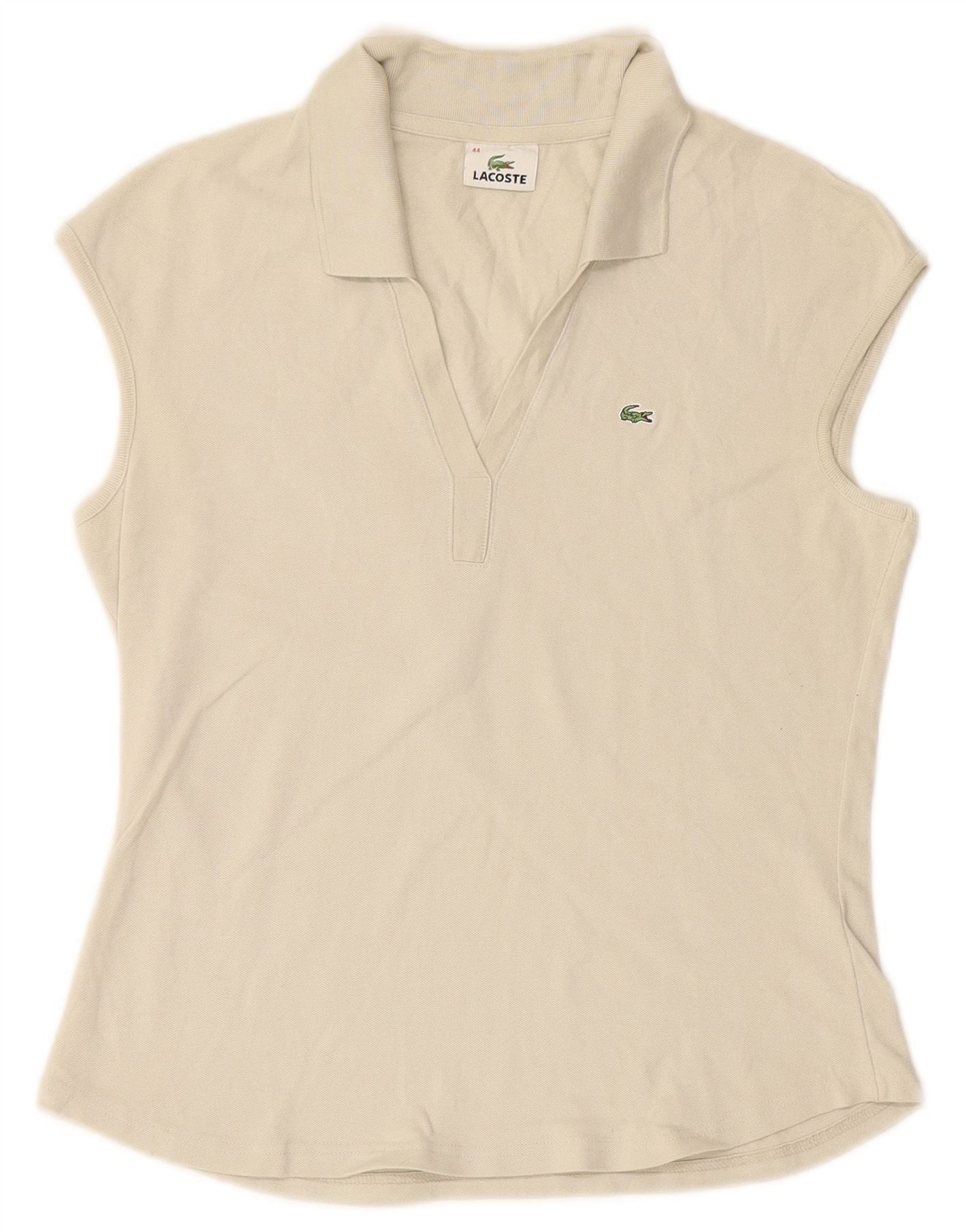 Damska koszulka polo bez rękawów LACOSTE, rozmiar 44, duża, biała, bawełniana