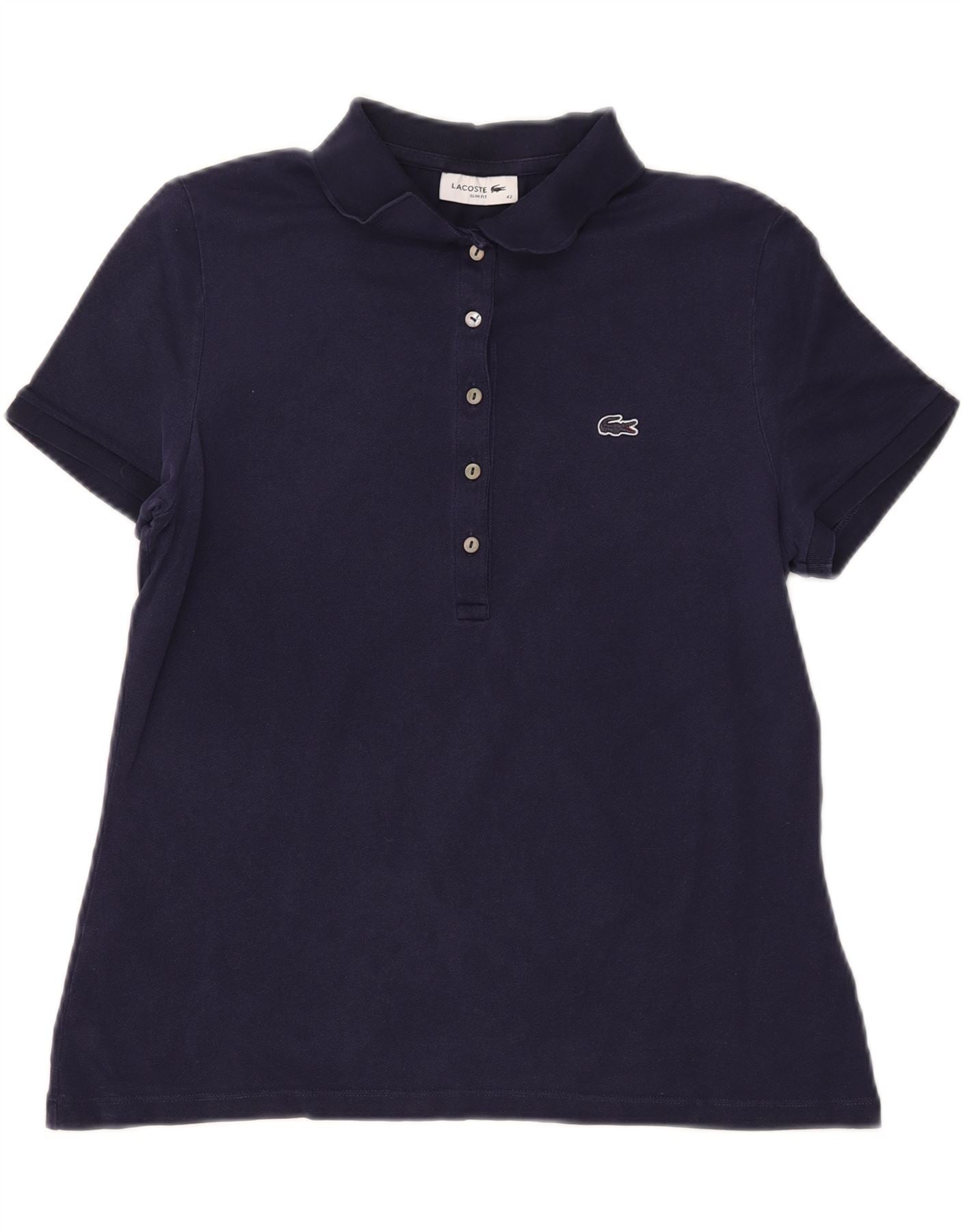 Damska koszulka polo LACOSTE Slim Fit, rozmiar 42, duża, granatowa, bawełniana