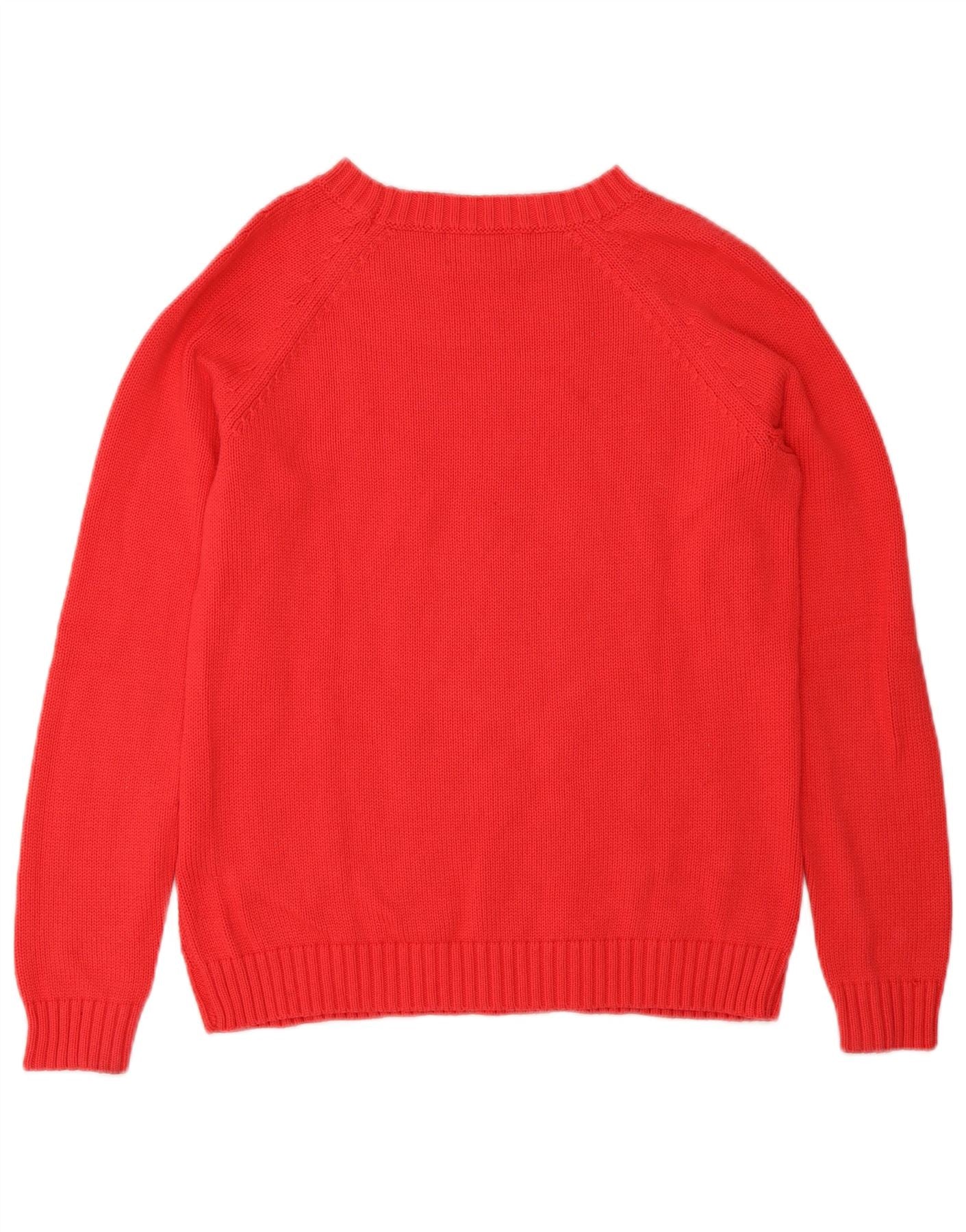 LANDS END Damski sweter z okrągłym dekoltem, UK 12, średni czerwony, bawełniany