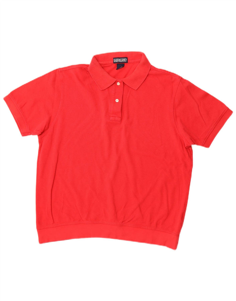 Damska koszulka polo LANDS END o regularnym kroju, UK 14/16, duża, czerwona bawełna