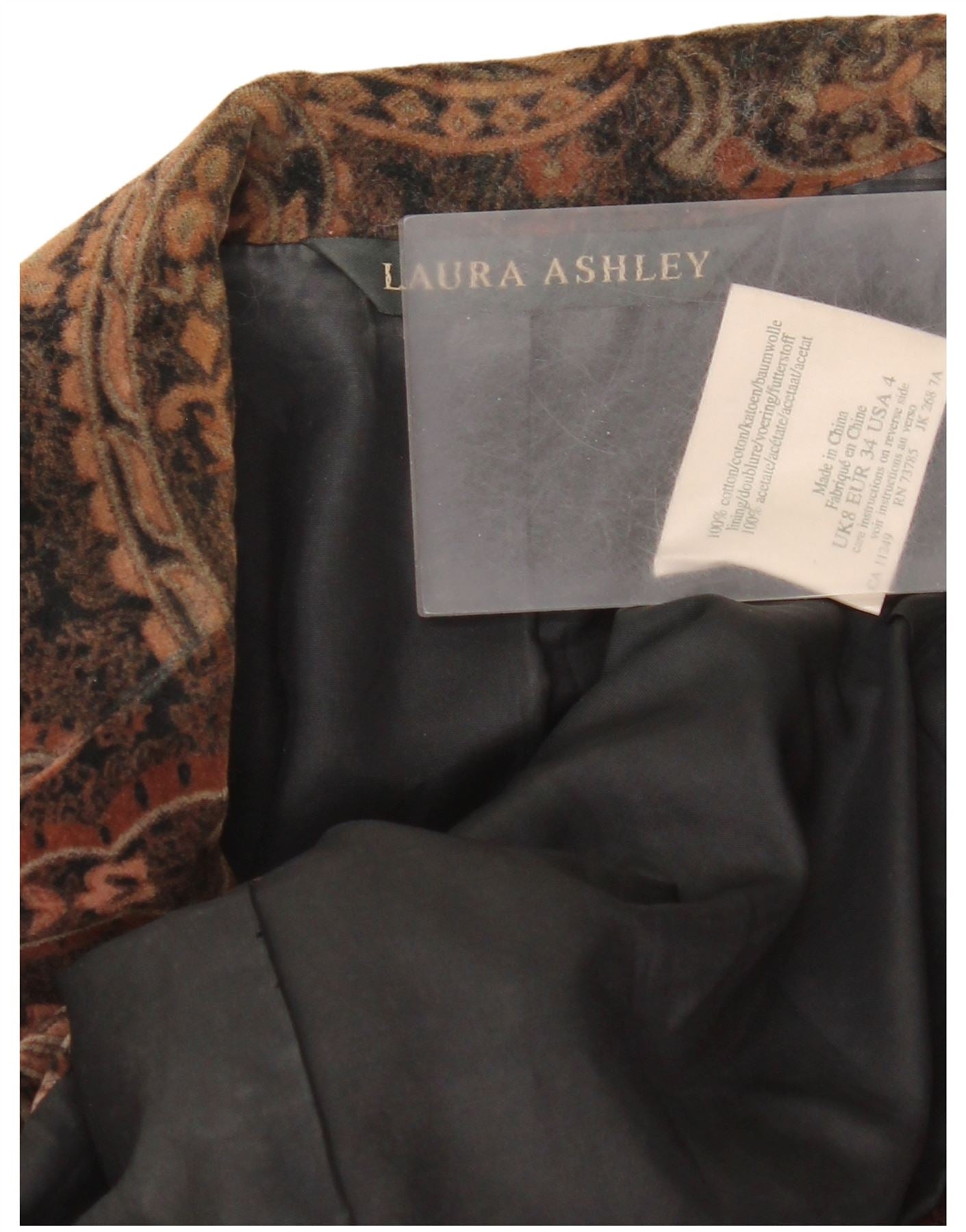 Damska marynarka Laura Ashley zapinana na 2 guziki, aksamitna marynarka UK 8, mała brązowa paisley