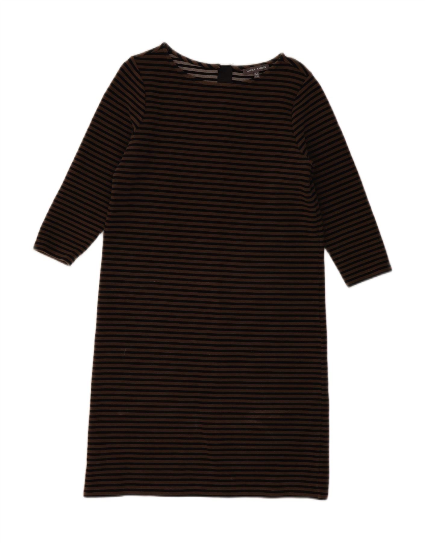 LAURA ASHLEY Damska sukienka typu shift z rękawem 3/4 UK 12 w średnie beżowe paski