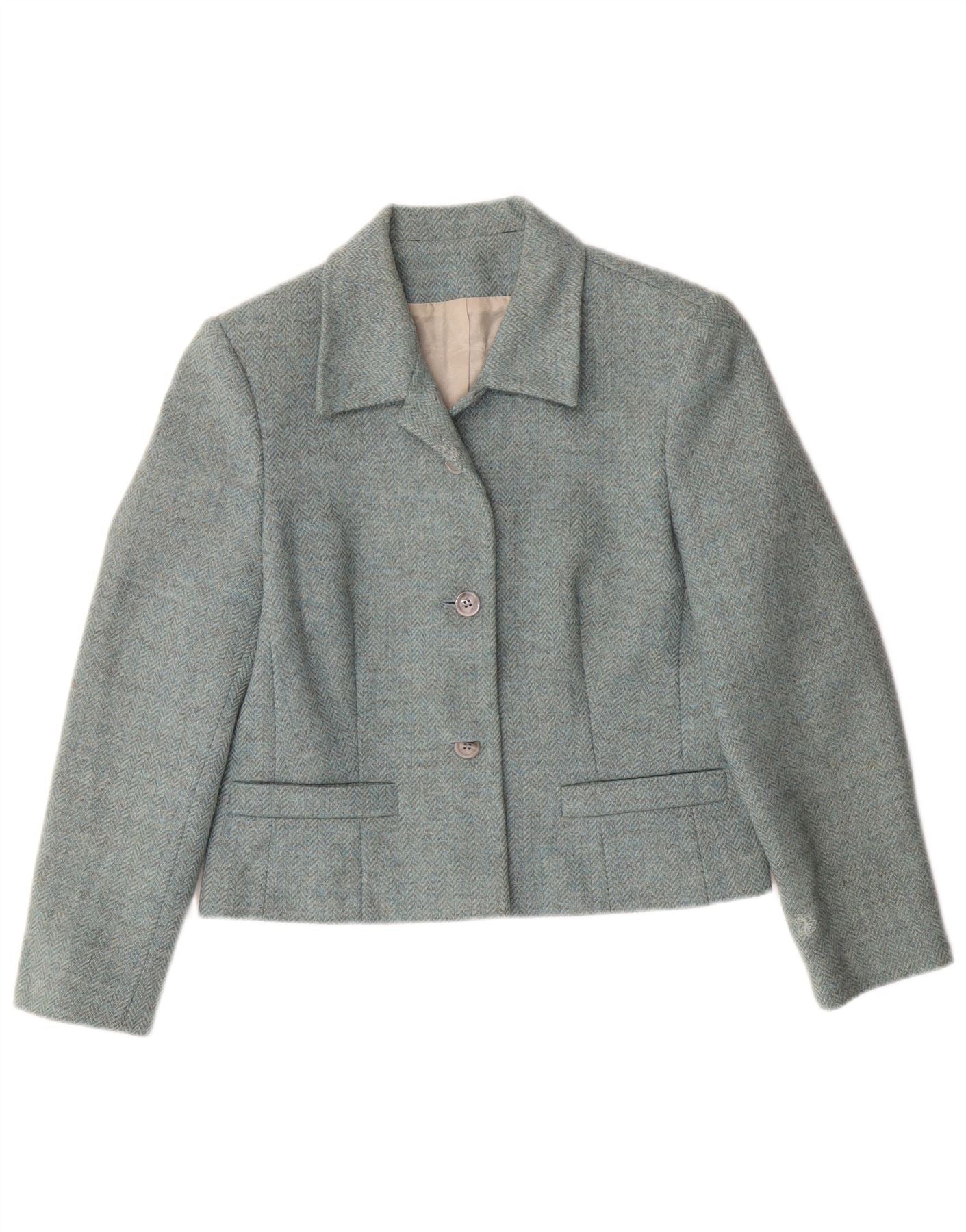 LAURA ASHLEY Damska marynarka zapinana na 3 guziki, UK 12, średnia niebieska wełna