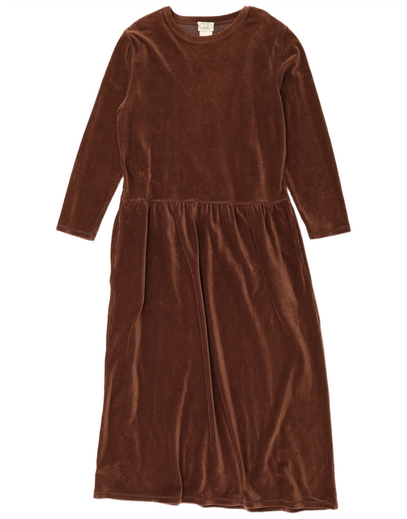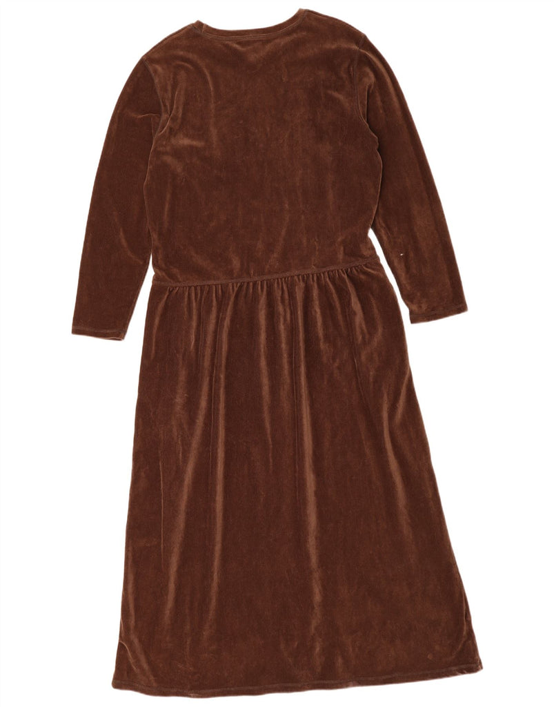 LAURA ASHLEY Womens Long Sleeve Velvet Maxi Dress UK 14 Large Brown Cotton