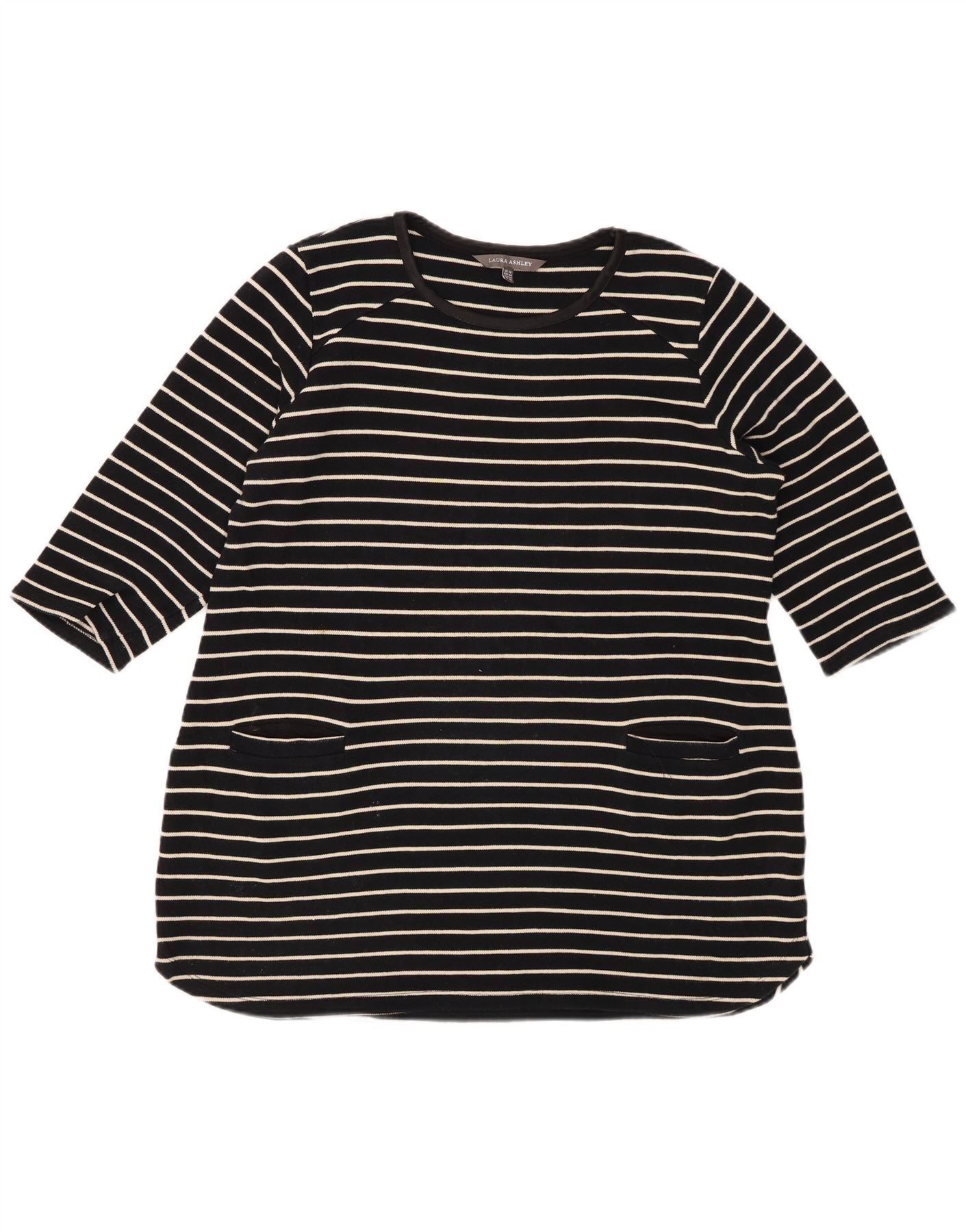 LAURA ASHLEY Damski top z rękawem 3/4, UK 18 XL, z czarnej bawełny w paski
