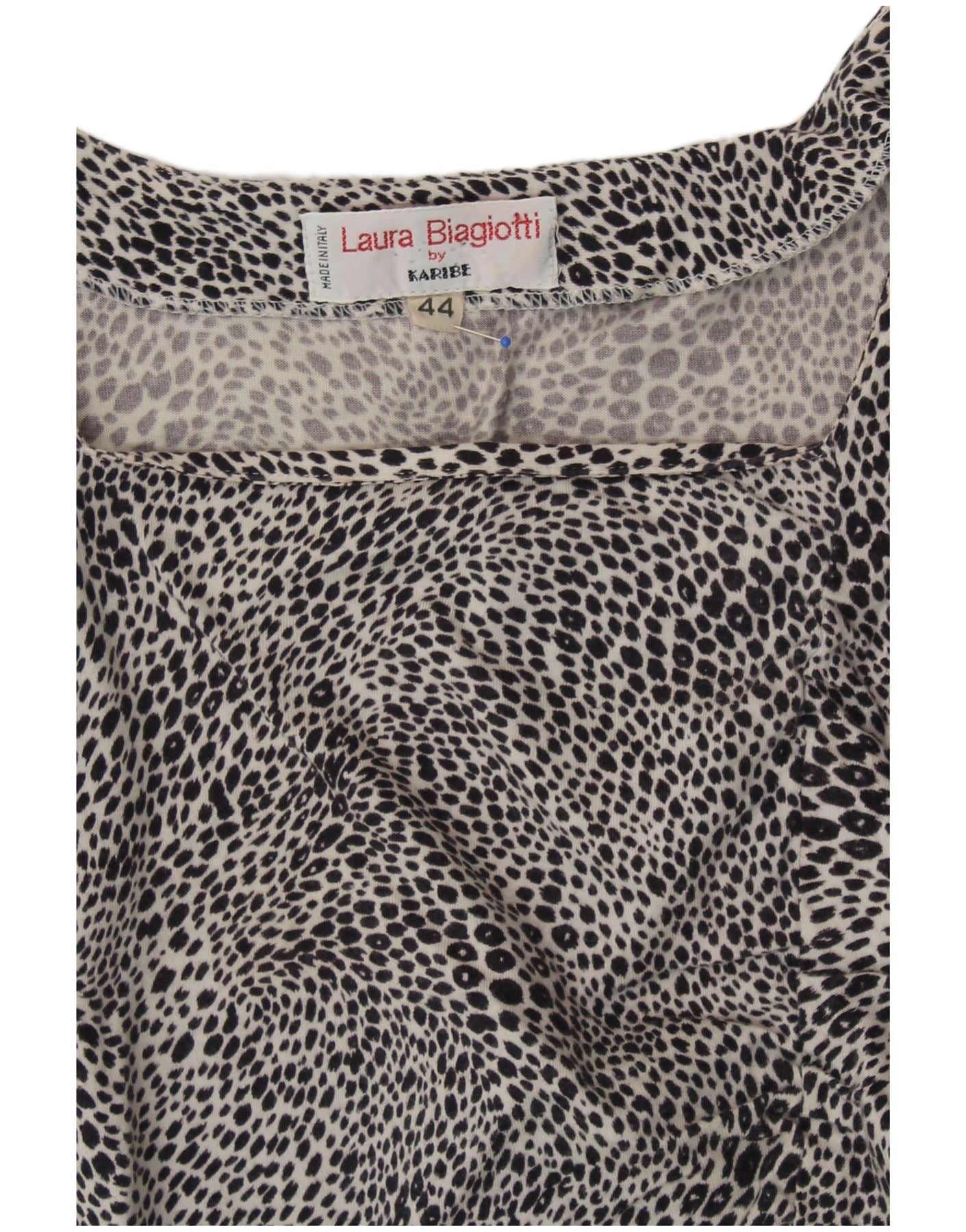LAURA BIAGIOTTI Womens Crop Blouse Top IT 44 Medium Black Animal Print