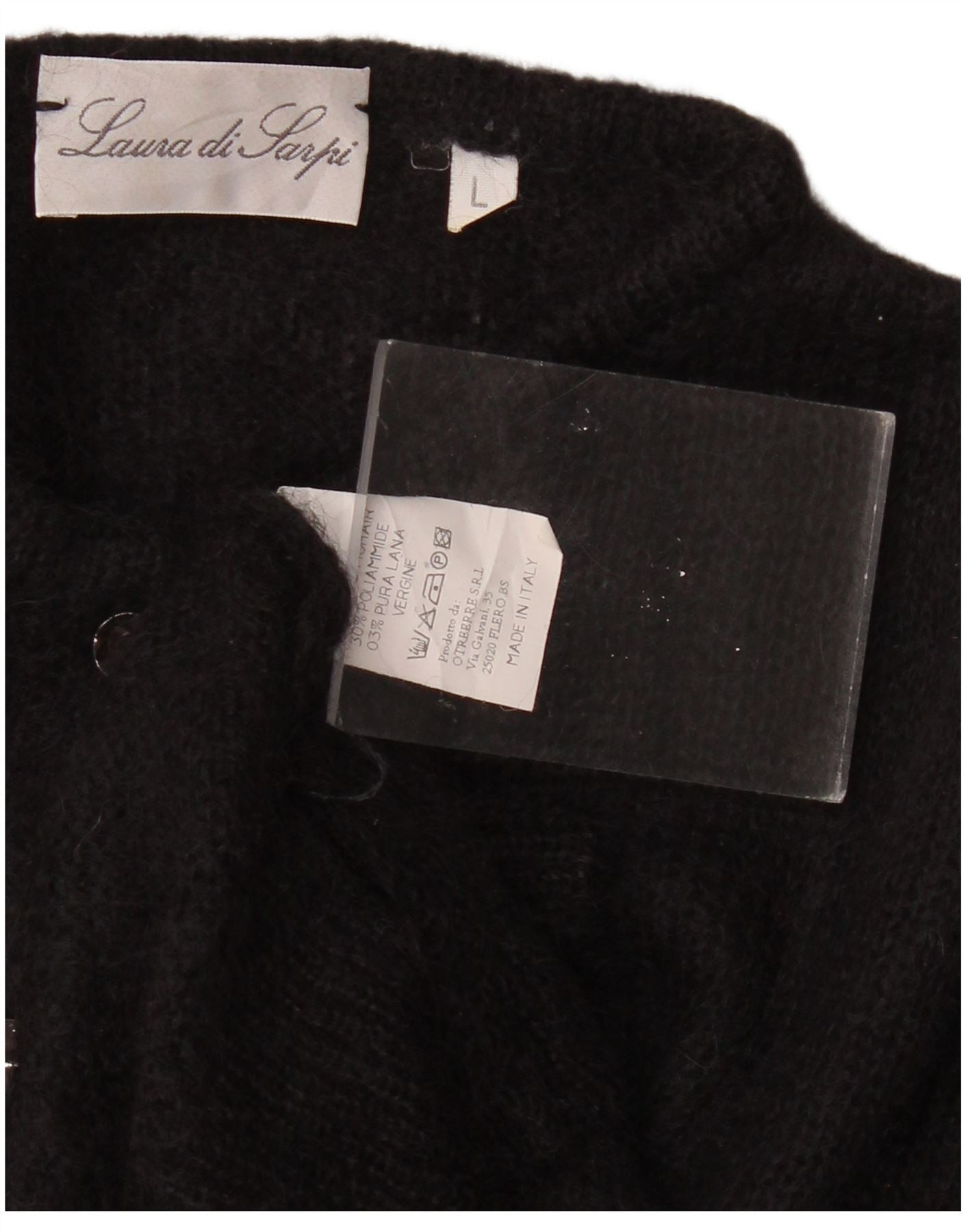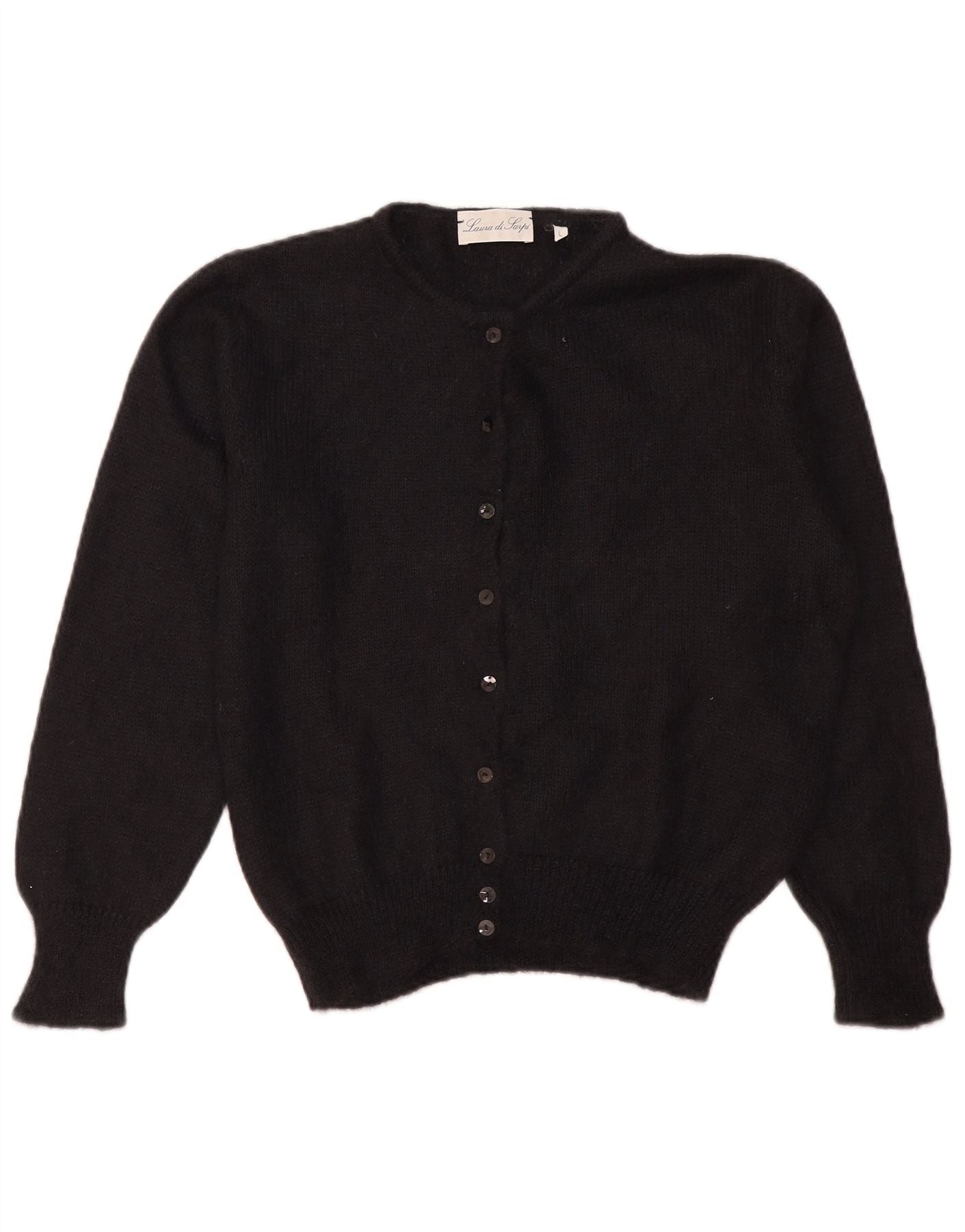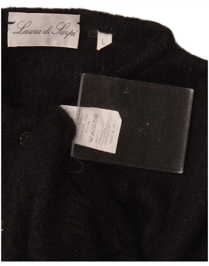 Damski sweter rozpinany LAURA DI SARPI UK 16, duży, czarny moher