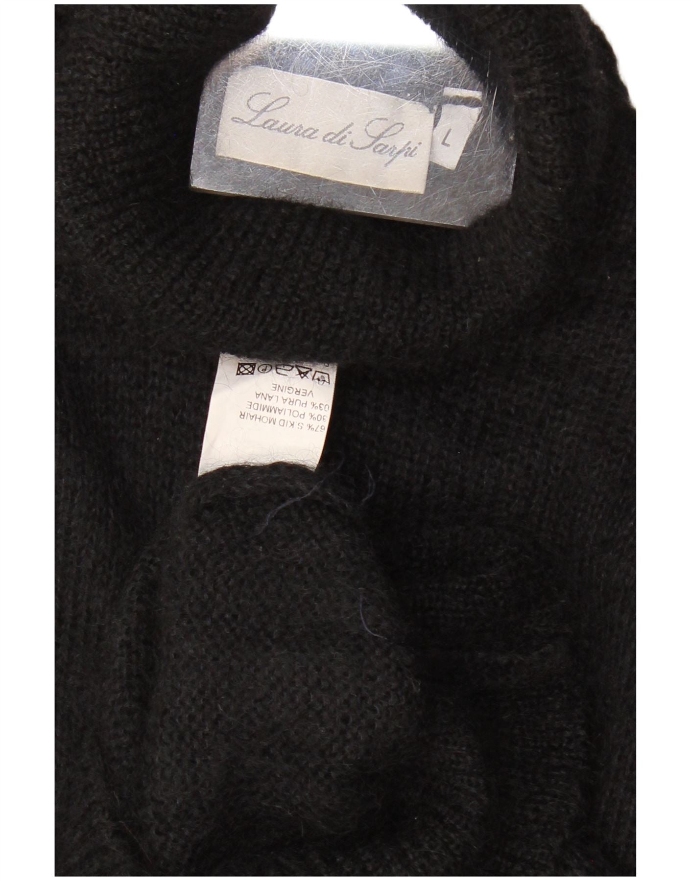 Damski sweter LAURA DI SARPI z wywijanym dekoltem UK 14, duży czarny
